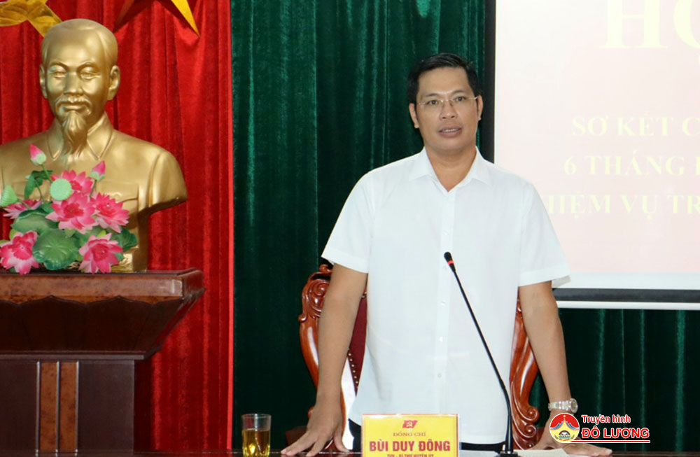 Kết luận hội nghị, đồng chí Bùi Duy Đông – Ủy viên BCH Đảng bộ tỉnh, Bí thư Huyện ủy nhấn mạnh: Trên cơ sở những kết quả đạt được, chủ động khắc phục tồn tại khó khăn, bám sát các mục tiêu, chỉ tiêu, quyết tâm thực hiện thành công các mục tiêu nhiệm vụ đề ra. Tăng cường nắm bắt diễn biến tư tưởng, dư luận. Lãnh đạo kiện toàn tổ chức bộ máy gắn với luân chuyển cán bộ. Chỉ đạo thực hiện tốt các kết luận sau thanh tra, kiểm tra theo Chỉ thị 15 – CT/TU. Tập trung thực hiện các nhiệm vụ xây dựng nông thôn mới nâng cao, NTM kiểu mẫu. Tập trung phát triển và nhân rộng các mô hình nông nghiệp có hiệu quả. Quản lý chặt chẽ quy hoạch, kế hoạch sử dụng đất, giao đất, cho thuê đất, thu hồi đất. Đẩy nhanh tiến độ cấp giấy chứng nhận QSD đất và quản lý khoáng sản. Tham mưu Ban Thường vụ Tỉnh ủy ban hành Nghị quyết xây dựng Đô Lương thành Thị xã động lực, là trung tâm kinh tế văn hóa mới của tỉnh Nghệ An.