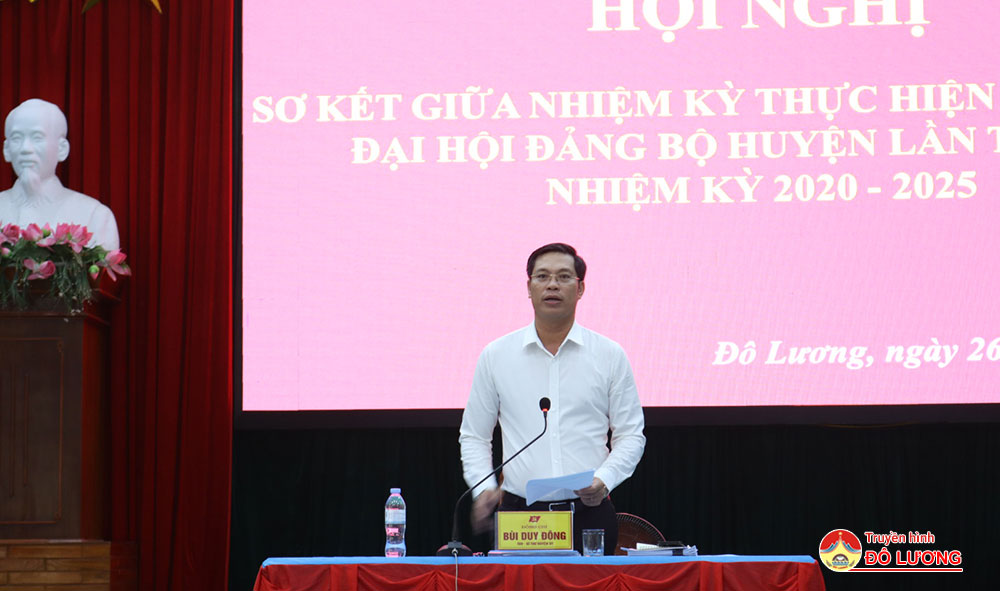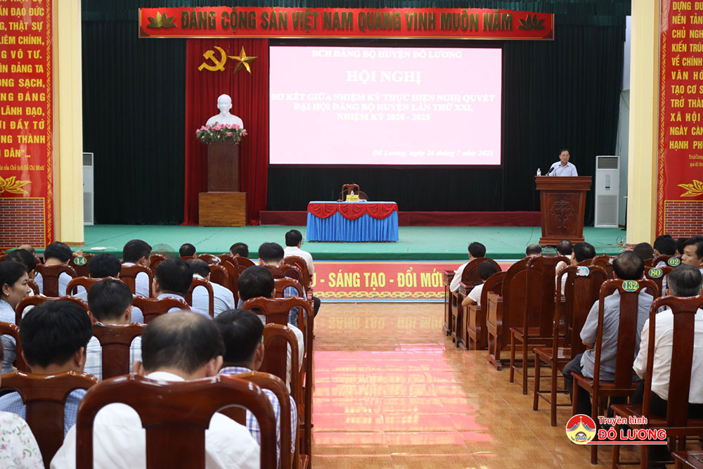 Nửa nhiệm kỳ qua, Ban chấp hành Đảng bộ huyện cũng đã ban hành chương trình hành động số 1 về thực hiện Nghị quyết Đại hội Đảng bộ huyện Đô Lương lần thứ XXI gồm 26 nội dung. Ngoài ra Ban Thường vụ triển khai thực hiện 33 nội dung theo chương trình hành động thực hiện Nghị quyết Đại hội Đảng bộ tỉnh lần thứ XIX. Hiện nay đã lãnh đạo, chỉ đạo ban hành được 19/26 chương trình, đề án thực hiện triển khai Nghị quyết Đại hội Đảng các cấp.Trong giai đoạn này, thu ngân sách đều tăng hàng năm. Đến hết năm 2022, toàn huyện có 32/32 xã đạt chuẩn NTM, trong đó có 5/32 xã đạt chuẩn nông thôn mới nâng cao. Kết quả chất lượng giáo dục tiếp tục chuyển biến tích cực, ngày càng vững chắc, toàn diện; tiếp tục giữ vững vị trí tốp đầu toàn tỉnh về chất lượng đại trà và chất lượng mũi nhọn.Tỷ lệ học sinh giỏi tiếp tục tăng ở các bậc học. Văn hóa thông tin có nhiều đổi mới, tiến bộ, nhiều hoạt động đi sâu vào đời sốn của nhân dân.Tỷ lệ hộ nghèo trên địa bàn huyện 2,93%, giảm so với đầu nhiệm kỳ 1,78%. Quốc phòng – An ninh được giữ vững.