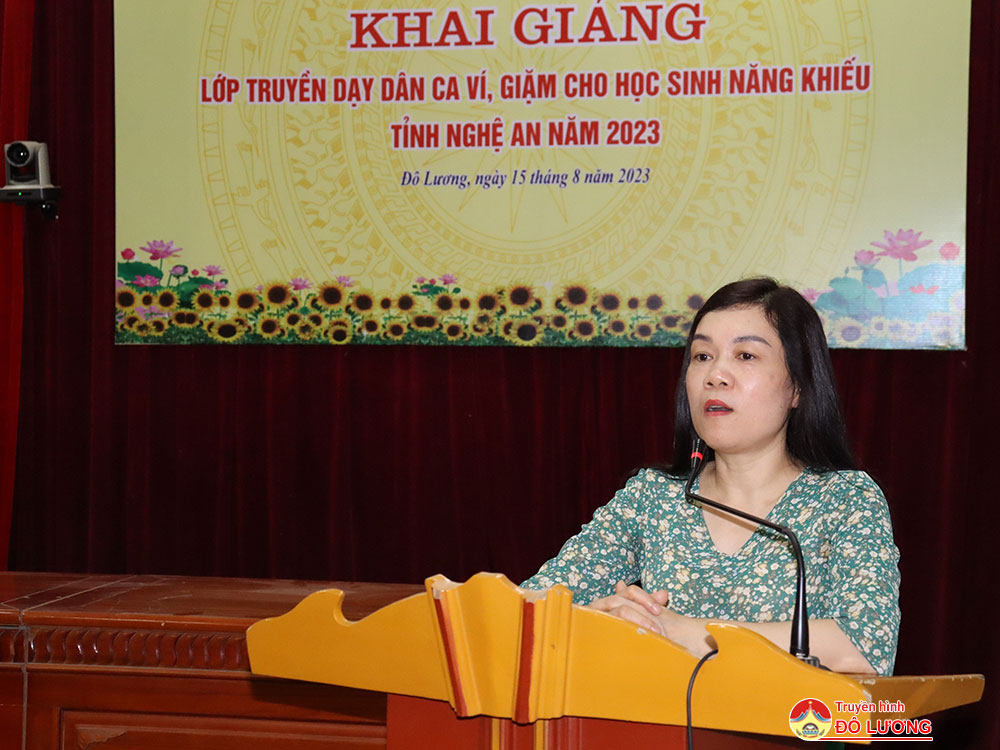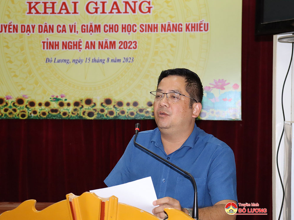 Chiều ngày 15/8, tại huyện Đô Lương, Sở Văn hóa và Thể Thao đã tổ chức khai giảng lớp truyền dạy Dân ca, Ví Giặm cho học sinh năng khiếu tỉnh Nghệ An. Về dự có đồng chí Quách Thị Cường- Phó Bí thư Đảng ủy- Phó giám đốc Sở Văn hóa và Thể thao, đồng chí Trần Quốc Chung- Phó giám đốc Trung tâm Nghệ thuật truyền thống Nghệ An; các đồng chí đại diện Ban Tuyên giáo Huyện ủy, Phòng Văn hóa- Thông tin, Trung tâm Văn hóa- Thể thao và Truyền thông, Phòng giáo dục đào tạo huyện Đô Lương.