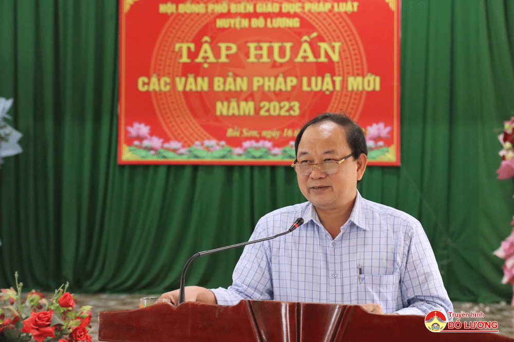 Trong đợt tập huấn phổ biến giáo dục pháp luật mới năm 2023, từ ngày 16/10 đến ngày 19/10, huyện Đô Lương bố trí tập huấn tại 4 cụm ở các xã: Bồi Sơn, Xuân Sơn, Thịnh Sơn và Nhân Sơn. Các nội dung phổ biến pháp luật mới được đại diện Phòng nội vụ, Phòng thanh tra và Công an huyện phổ biến đến các học viên.