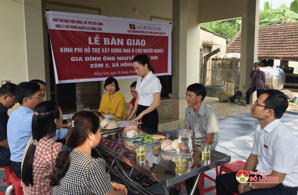 Tại buổi lễ, đại diện lãnh đạo Ngân hàng Agribank Chi nhánh huyện Đô Lương nam Nghệ An đã cho biết, hưởng ứng lời kêu gọi của UBMTTQ các cấp, Ngân hàng Agribank đã phát động cán bộ, nhân viên cùng chung tay góp sức, hỗ trợ xây dựng nhà ở cho các hộ gia đình nghèo có hoàn cảnh khó khăn trên toàn quốc, trong đó có hộ gia đình anh Nguyễn Văn Hợi để gia đình anh an tâm về nhà ở, vươn lên thoát nghèo.