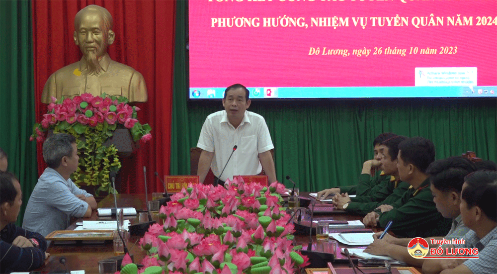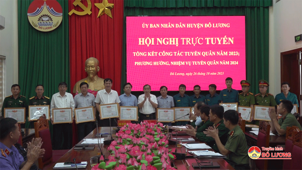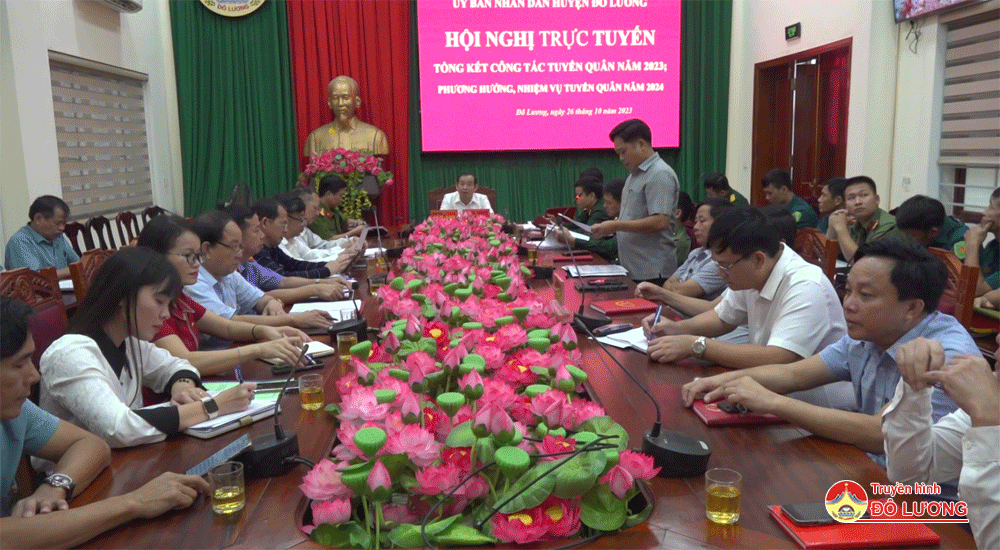 Sáng ngày 26/10, UBND huyện Đô Lương đã tổ chức hội nghị trực tuyến tổng kết công tác tuyển quân năm 2023, triển khai công tác tuyển quân năm 2024. Đồng chí Hoàng Văn Hiệp – Phó Bí thư Huyện ủy, Chủ tịch UBND huyện, Chủ tịch Hội đồng nghĩa vụ quân sự huyện chủ trì hội nghị. Dự hội nghị có các đồng chí trong Hội đồng nghĩa vụ quân sự huyện và 33 điểm cầu của các xã- thị trong toàn huyện.