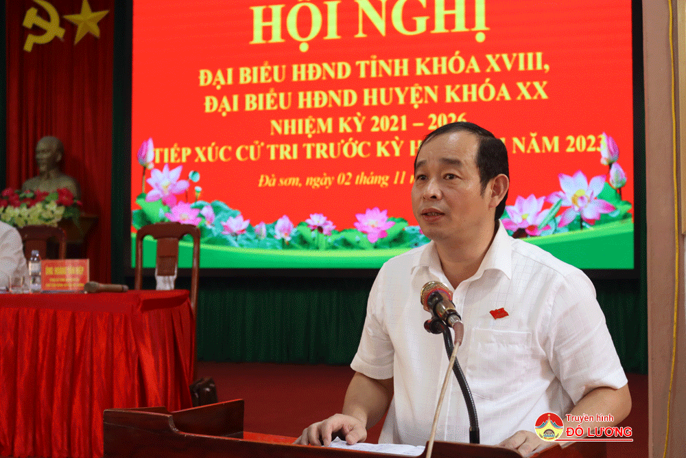 Chiều ngày 2/11, Đại biểu HĐND tỉnh gồm các ông: Nguyễn Thanh Tùng – Phó Giám đốc Sở Tài chính; Hoàng Văn Hiệp – Phó Bí thư Huyện ủy, Chủ tịch UBND huyện; bà Hoàng Thị Hồng Hạnh – Bí thư Đảng ủy xã Trung Sơn đã về tiếp xúc cử tri tại xã Đà Sơn trước kỳ họp cuối năm 2023. Về phía huyện có các đồng chí Nguyễn Tất Hoài Hiệp – Phó bí thư Huyện ủy, Chủ tịch HĐND huyện; Vương Thị Quý – Ủy viên BTV Huyện ủy- Chủ tịch UBMTTQ huyện, các vị đại biểu HĐND huyện, đại diện các phòng, ngành cấp huyện.