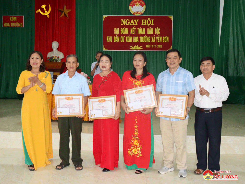 Chiều ngày 12/11, xóm Hoa Trường xã Yên Sơn đã tổ chức ngày hội Đại đoàn kết. Về dự chung với Nhân dân có đồng chí Trần Văn Long- Ủy viên Ban Thường vụ Huyện ủy- Chủ nhiệm Ủy ban kiểm tra Đảng – Cụm trưởng chỉ đạo; đại diện HĐND, UBMTTQ huyện.
