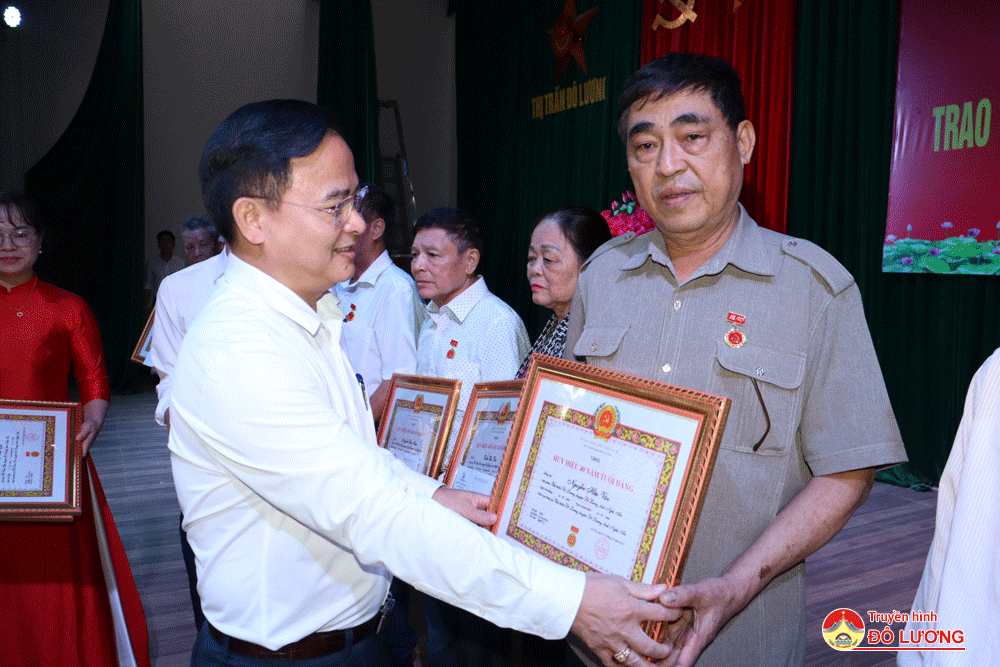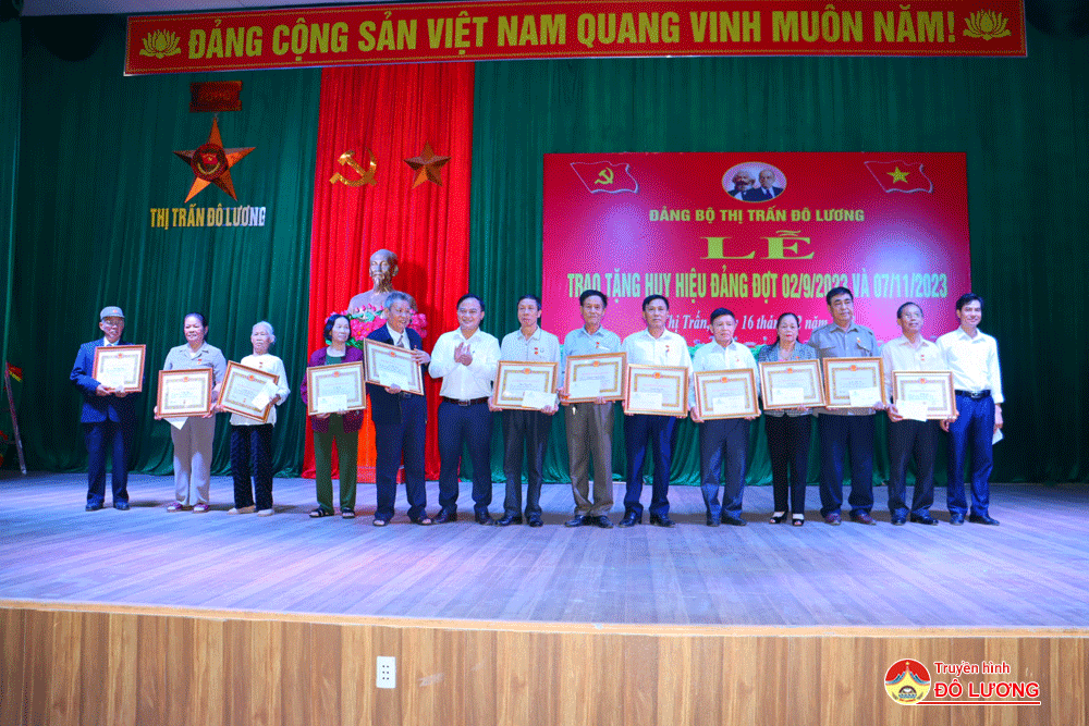 Đợt trao huy hiệu Đảng nhân dịp ngày 2/9 và 7/11/2023, Đảng bộ Thị Trấn- Đô Lương vinh dự có 16 đồng chí được nhận huy hiệu 55, 45 , 40, 30 năm tuổi Đảng. Trong đó, huy hiệu 55 tuổi Đảng có 5 đảng viên. Huy hiệu 45 năm tuổi đảng, có 2 đảng viên. Huy hiệu 40 năm tuổi Đảng, có 5 đảng viên. Huy hiệu 30 năm tuổi Đảng, có 2 đảng viên và truy tặng 2 đảng viên.