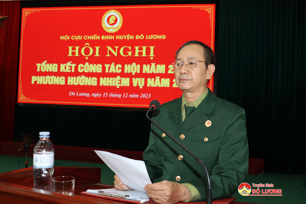Phát biểu tại hội nghị, đồng chí Doãn Ngọc Sơn – Phó Chủ tịch Hội CCB tỉnh biểu dương, ghi nhận, chúc mừng những thành tích của Hội CCB các cấp trong huyện. Đồng thời nhấn mạnh trong thời gian tới Hội CCB huyện Đô Lương cần tiếp tục triển khai nghị quyết, chỉ thị của tỉnh, đặc biệt là nghị quyết của Hội cấp trên gắn với làm tốt công tác xây dựng tổ chức Hội vững mạnh. Tập trung xây dựng quy chế hoạt động thực hiện nhiệm vụ chính trị của địa phương. Tiếp tục đổi mới phương thức hoạt động, tập hợp, thu hút hội viên gắn với học tập và làm theo tư tưởng tấm gương đạo đức HCM. Tiếp tục thực hiện việc tham gia giám sát và phản biện xã hội, xây dựng Đảng, chính quyền vững mạnh. Bên cạnh đó, tập trung triển khai các phong trào thi đua yêu nước gắn với công tác xây dựng Nông thôn mới, Nông thôn mới nâng cao. Quan tâm công tác đền ơn đáp nghĩa, công tác an sinh xã hội; giáo dục truyền thống cho thế hệ trẻ…