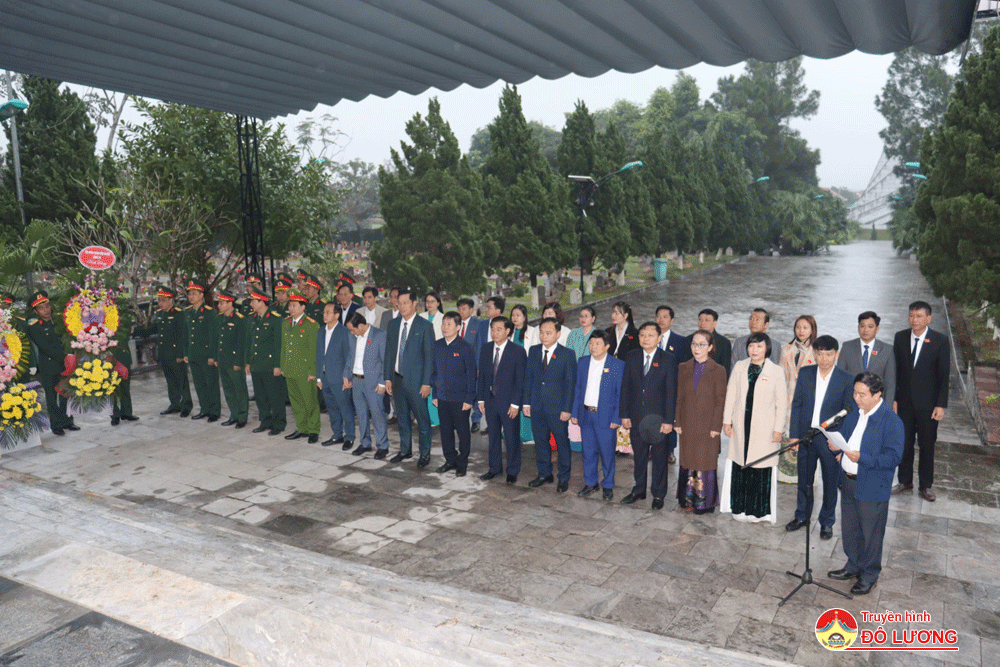 Trước khi bước vào kỳ họp, các đại biểu đã đến dâng hoa, dâng hương tại nghĩa trang Liệt sỹ Quốc tế huyện Đô Lương.