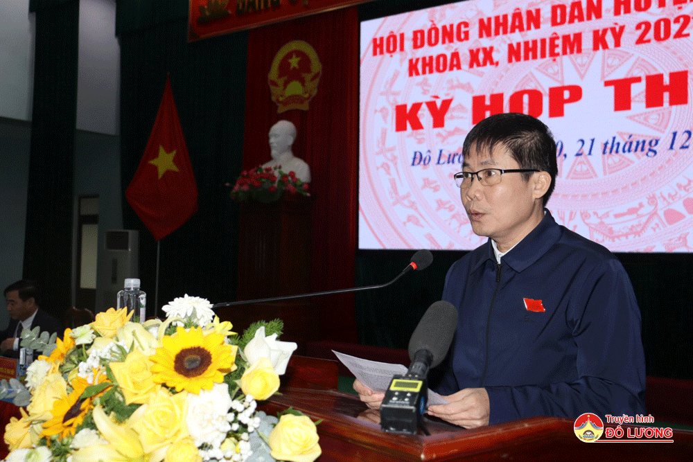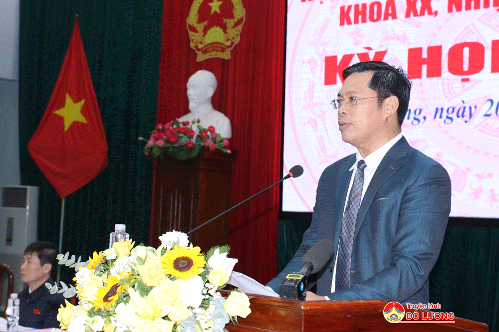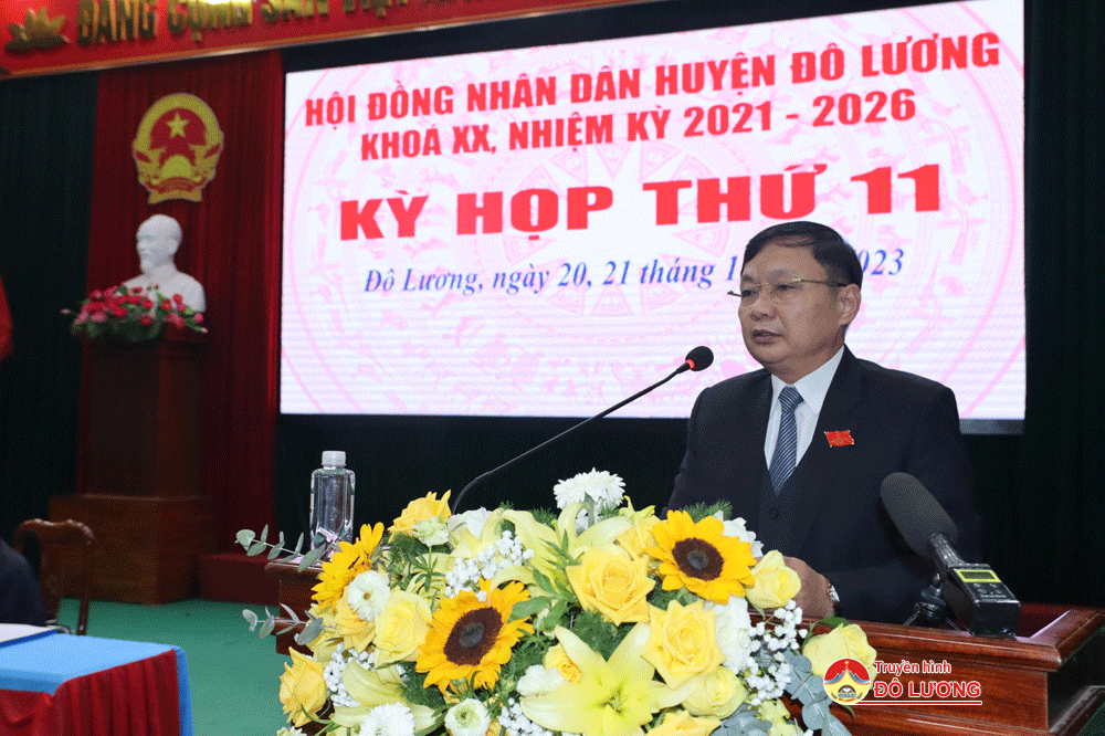 Phát biểu tại kỳ họp, đồng chí Bùi Duy Đông – Tỉnh ủy viên, Bí thư Huyện ủy đã ghi nhận, biểu dương sự nỗ lực, quyết tâm khắc phục khó khăn của HĐND, UBND, các phòng, ban, ngành, địa phương, đơn vị và đánh giá cao vai trò, trách nhiệm của các vị đại biểu HĐND, cử tri và nhân dân trong huyện đã đóng góp quan trọng vào sự nghiệp chung của huyện nhà. Nhấn mạnh tại kỳ họp, đồng chí nêu rõ, năm 2024, BCH Đảng bộ đã xác định: Phát huy tinh thần đoàn kết, khơi dậy khát vọng ý chí tự lực, tự cường phấn đấu vì một Đô Lương phát triển. Vì vậy, Đảng bộ và Nhân dân huyện nhà cần tích cực, trách nhiệm, ra sức thi đua thực hiện tốt các nhiệm vụ chính trị. Trong đó, HĐND huyện phải tiếp tục thực hiện tốt sứ mệnh là cơ quan quyền lực tại địa phương, đại diện cho ý chí, tâm tư, nguyện vọng chính đáng của cử tri huyện nhà….