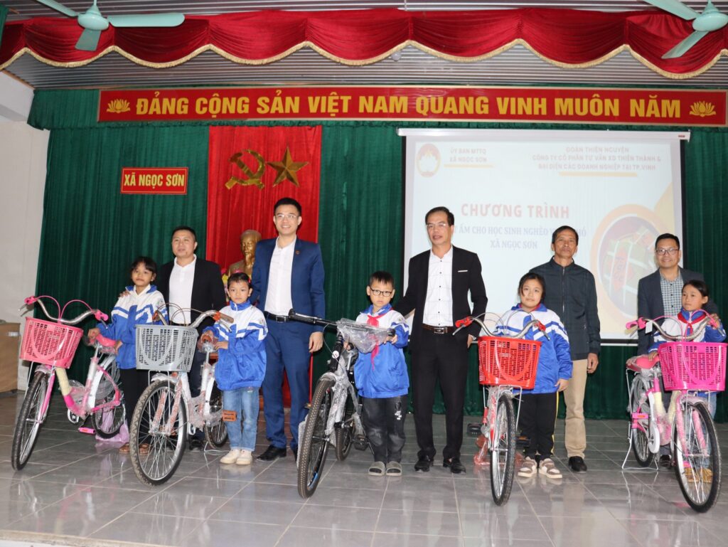 Sáng ngày 28/12, tại UBND xã Ngọc Sơn, đoàn thiện nguyện ở Thành phố Vinh gồm các Doanh nghiệp thương mại dịch vụ và Kế toán kiểm toán đã trao quà và xe đạp cho các em học sinh nghèo vượt khó.