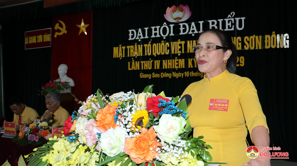 Phát biểu chỉ đạo Đại hội, đồng chí Nguyễn Thị Hợi – Phó chủ tịch UBMTTQ huyện Đô Lương ghi nhận, đánh giá cao những kết quả của Mặt trận tổ quốc xã Giang Sơn Đông đã đạt được trong nhiệm kỳ qua, cũng như công tác chuẩn bị và tổ chức Đại hội.