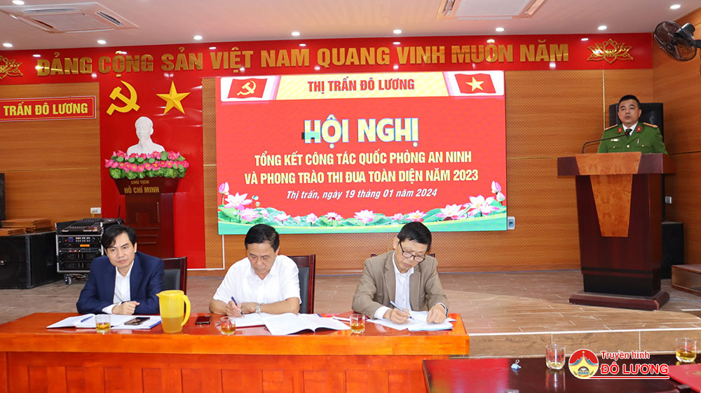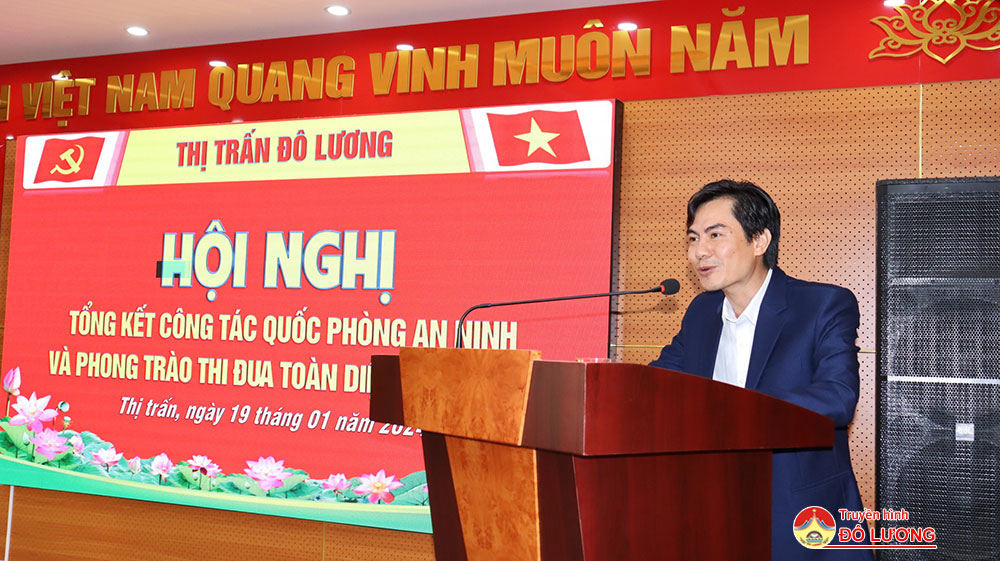 Sáng 19/1, Thị trấn Đô Lương tổ chức hội nghị tổng kết công tác quốc phòng và phong trào thi đua toàn diện năm 2024. Tới dự có các chí Nguyễn Đình Khương – Ủy viên BTV, Trưởng Ban Tổ chức Huyện ủy, Nguyễn Thanh Bình- Trưởng phòng Tài chính- Kế hoạch huyện và đại diện các phòng, ngành cấp huyện.