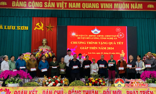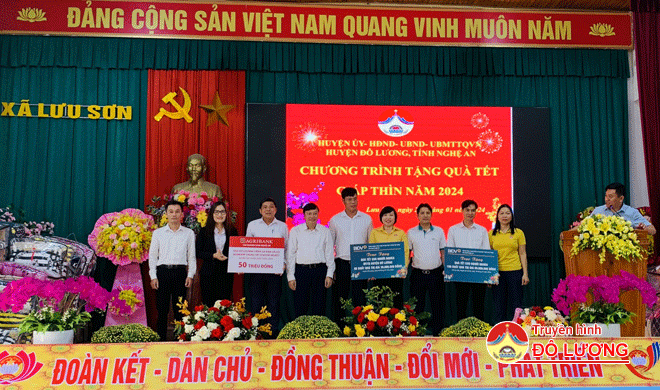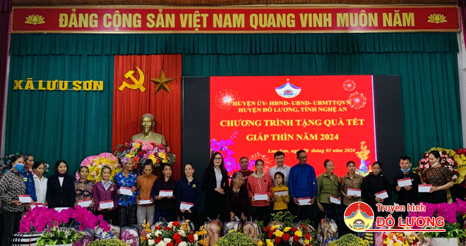 Sáng 20/1, Huyện ủy- HĐND- UBND- UBMTTQ huyện Đô Lương đã tổ chức trao quà tết cho hộ nghèo, hộ cận nghèo xã Lưu Sơn và Thị trấn. Tới dự buổi lễ trao quà có Bà Trần Thị Minh, Viện khoa học tổ chức, cán bộ – Ban Tổ chức Trung ương; Đồng chí Lê Hồng Vinh, Ủy viên BTV Tỉnh ủy- Phó chủ tịch Thường trực UBND tỉnh Nghệ An. Bà Nguyễn Thị Tuyết Mai- Phó giám đốc Ngân hàng Agribank chi nhánh Nam Nghệ An, đại diện Ngân hàng đầu tư. Về phía huyện có đồng chí Bùi Duy Đông Tỉnh ủy viên- Bí thư Huyện ủy; Vương Thị Quý- Ủy viên BTV huyện ủy, Chủ tịch UBMTTQ huyện; Nguyễn Trung Thành- Ủy viên BTV- Phó chủ tịch UBND huyện và đại diện các hộ dân được nhận quà.