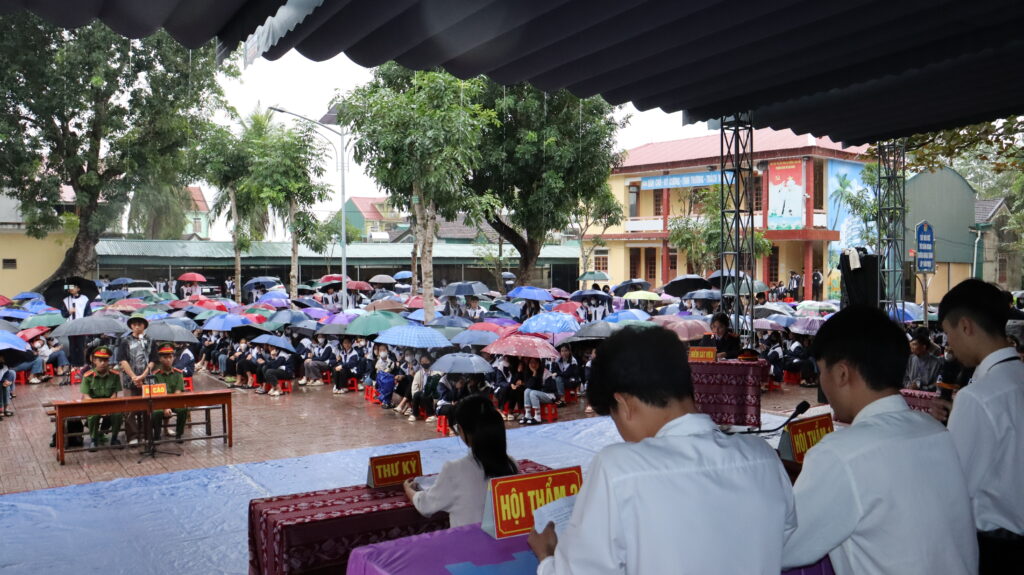 Quá trình diễn ra phiên tòa giả định, các tình tiết trong vụ án đã thực sự lôi cuốn đối với các đại biểu, cũng như học sinh và giáo viên.