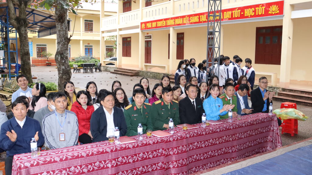 Về dự có đồng chí Trần Thị Huyền Mơ – Bí thư Huyện Đoàn cùng các đồng chí trong BTV huyện đoàn; Đại diện Công an huyện, Ban chỉ huy quân sự huyện, Phòng tư pháp và các thầy, cô giáo cùng 1600 học sinh trường THPT Đô Lương 3.