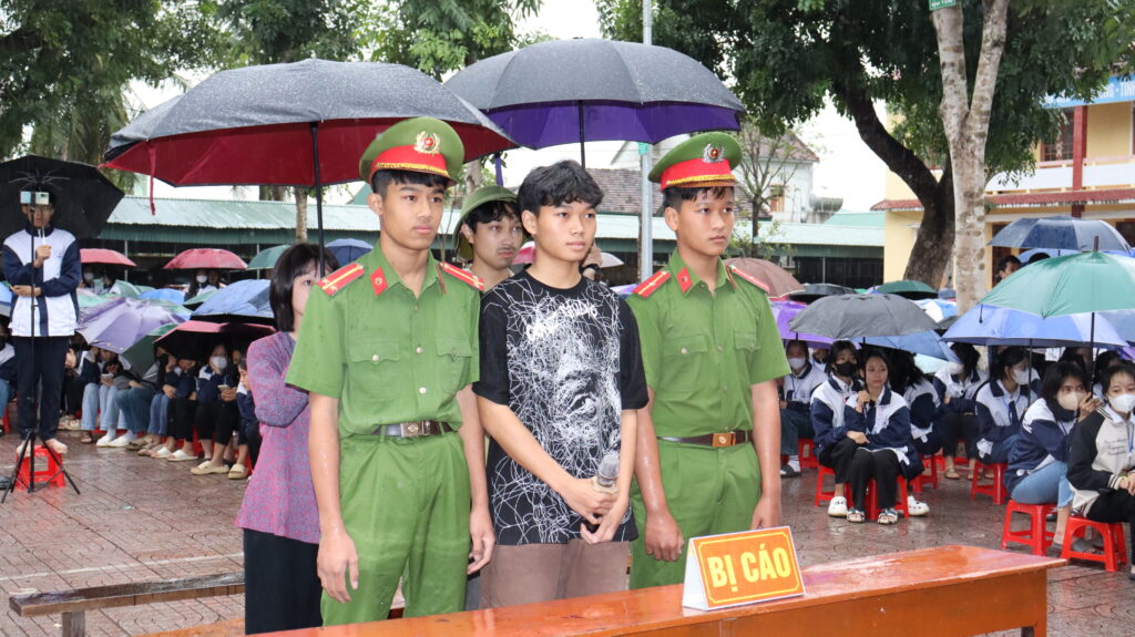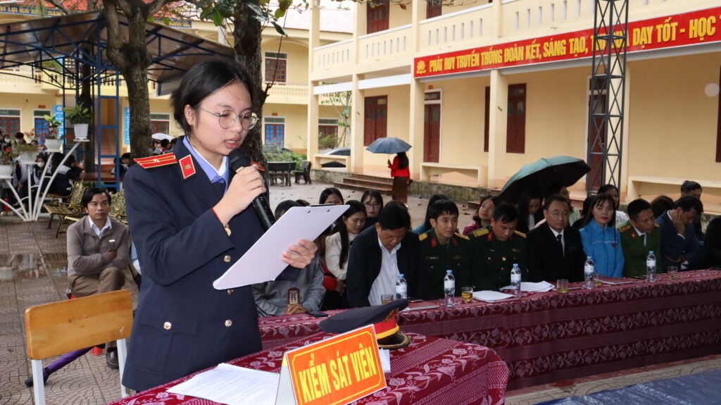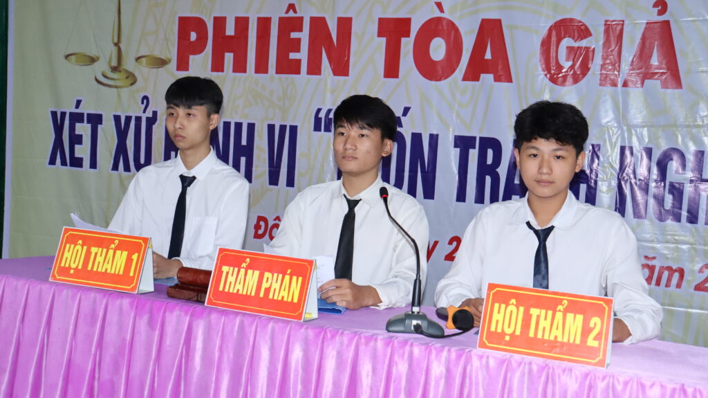Trước khi vào phiên tòa, các đại biểu và học sinh được xem đoạn kịch ngắn là tình huống giả định. Nội dung: Nguyễn Văn A trúng tuyển NVQS nên được BCH quân sự có lệnh gọi công dân nhập ngũ. Tuy nhiên, Nguyễn Văn A không chấp hành mà còn bỏ trốn vào Nam làm việc, Nguyễn Văn A bị Cơ quan CSĐT Công an khởi tố và bị áp dụng biện pháp ngăn chặn cấm đi khỏi nơi cư trú.