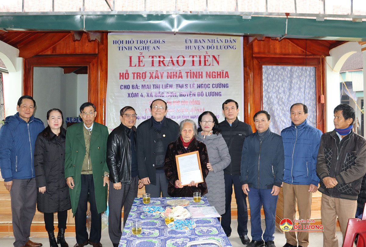 Sáng ngày 26/1, Hội Hỗ trợ gia đình liệt sĩ tỉnh Nghệ An phối hợp với Phòng LĐTBXH huyện Đô Lương, chính quyền xã Bắc Sơn trao tặng số tiền 50 triệu đồng cho bà Mai Thị Liên mẹ liệt sĩ Lê Ngọc Cương, ở xóm 4, xã Bắc Sơn, huyện Đô Lương. Liệt sỹ Lê Ngọc Cương hy sinh năm 2011 ở biên giới Việt- Lào trong lúc làm nhiệm vụ.
