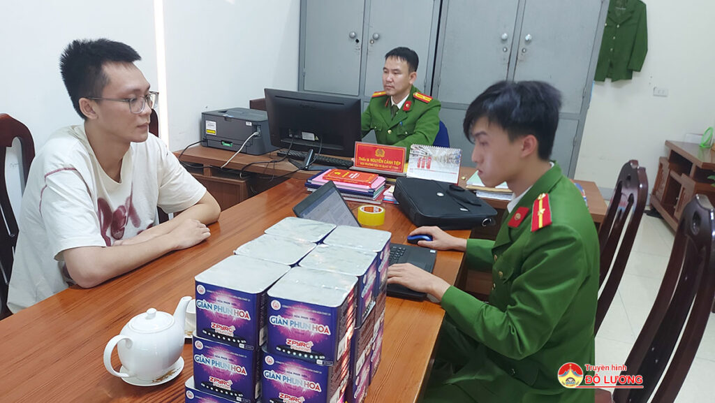 Vào lúc 15h 40 phút ngày 4/2/2024, tại cửa hàng tạp hóa Anh Thắng, khối 3 Thị trấn Đô Lương, tổ công tác đội Cảnh sát hành chính về TTXH Công huyện Đô Lương đã phát hiện anh Nguyễn Văn Hiếu – trú tại Khối 3 Thị trấn Đô Lương có hành vi mua bán pháo hoa Quốc phòng trái phép. Tổ công tác đã tiến hành kiểm tra và thu giữ 18 giàn pháo hoa Quốc phòng không có hóa đơn chứng từ chứng minh nguồn gốc xuất xứ và không có giấy phép kinh doanh hàng hóa dịch vụ thuộc ngành ngề đầu tư kinh doanh có điều kiện mà không có giấy phép kinh doanh. Tổ công tác đội Cảnh sát hành chính về TTXH Công huyện Đô Lương đã lập biên bản, thu giữ tang vật và lập hồ sơ để xử phạt Nguyễn Văn Hiếu theo quy định của pháp luật.