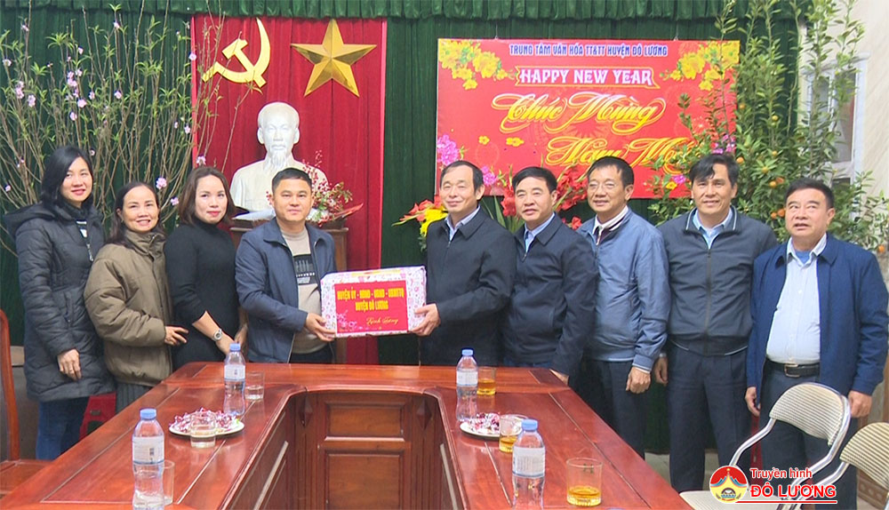 Cũng trong tối ngày 30 tết, đồng chí Hoàng Văn Hiệp – Phó Bí thư Huyện ủy, Chủ tịch UBND huyện và các đồng chí lãnh đạo huyện đã đến thăm, tặng quà chúc tết cán bộ và nhân viên Trung tâm Văn hóa Thể thao và Truyền thông huyện trực tết thực hiện nhiệm vụ tuyên truyền phục vụ nhân dân đón tết Cổ truyền Giáp thìn năm 2024.