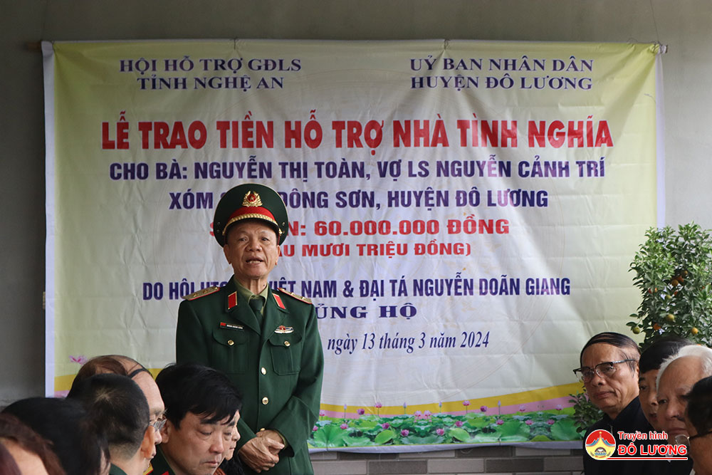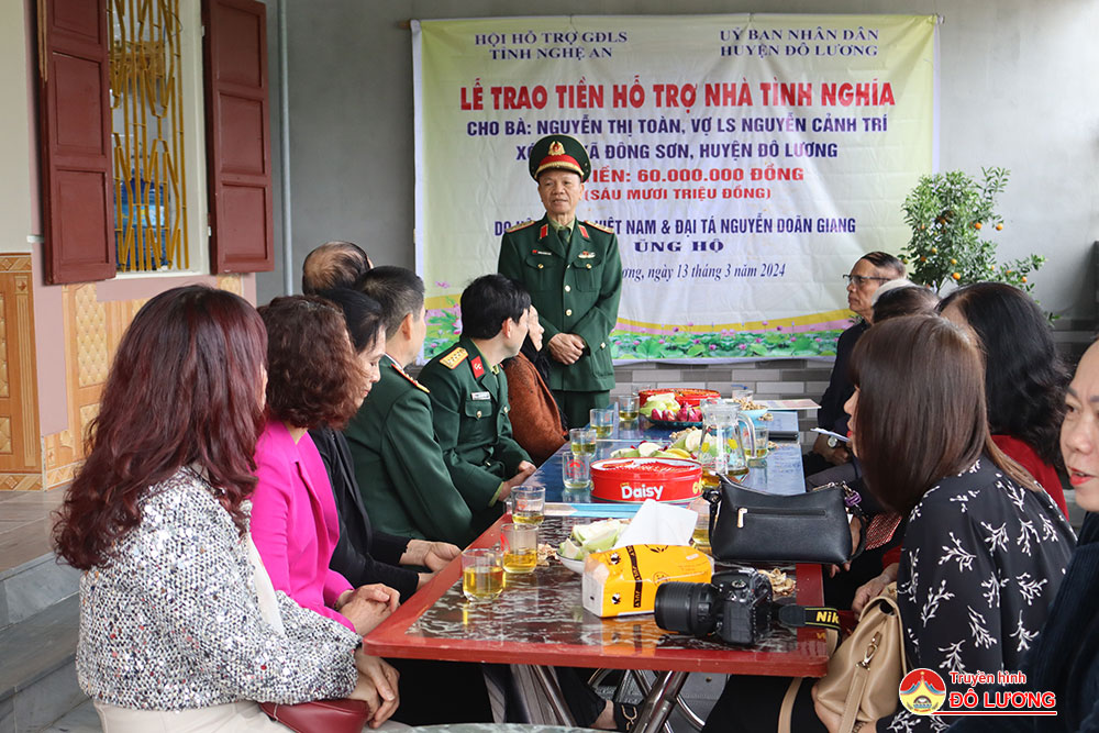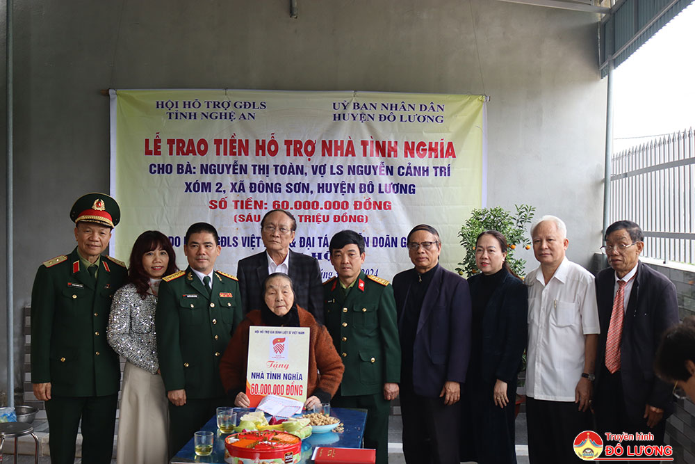Sáng ngày 13/3, tại xóm 2, xã Đông Sơn, Hội hỗ trợ gia đình liệt sỹ tỉnh phối hợp UBND huyện Đô Lương tổ chức trao tiền hỗ trợ xây dựng nhà tình nghĩa cho bà Nguyễn Thị Toàn – vợ liệt sỹ.
