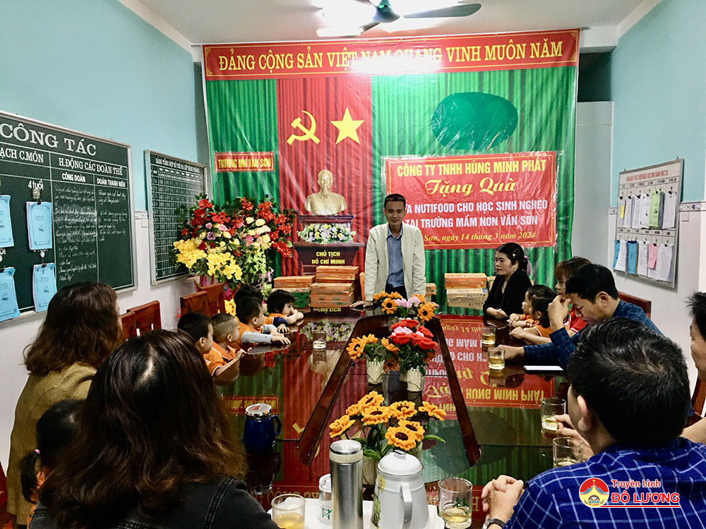 Sáng ngày 14/3, Công ty TNHH Hùng Minh Phát đã tổ chức trao sữa cho học sinh khó khăn trường Mầm non Văn Sơn. Về dự và trao sữa cho các cháu có đồng chí Nguyễn Đăng Hồng- Giám đốc Trung tâm Phục vụ hành chính công huyện Đô Lương, ông Nguyễn Đức Hùng- Giám đốc Công ty TNHH Hùng Minh Phát, cùng đại diện lãnh đạo xã Văn Sơn.
