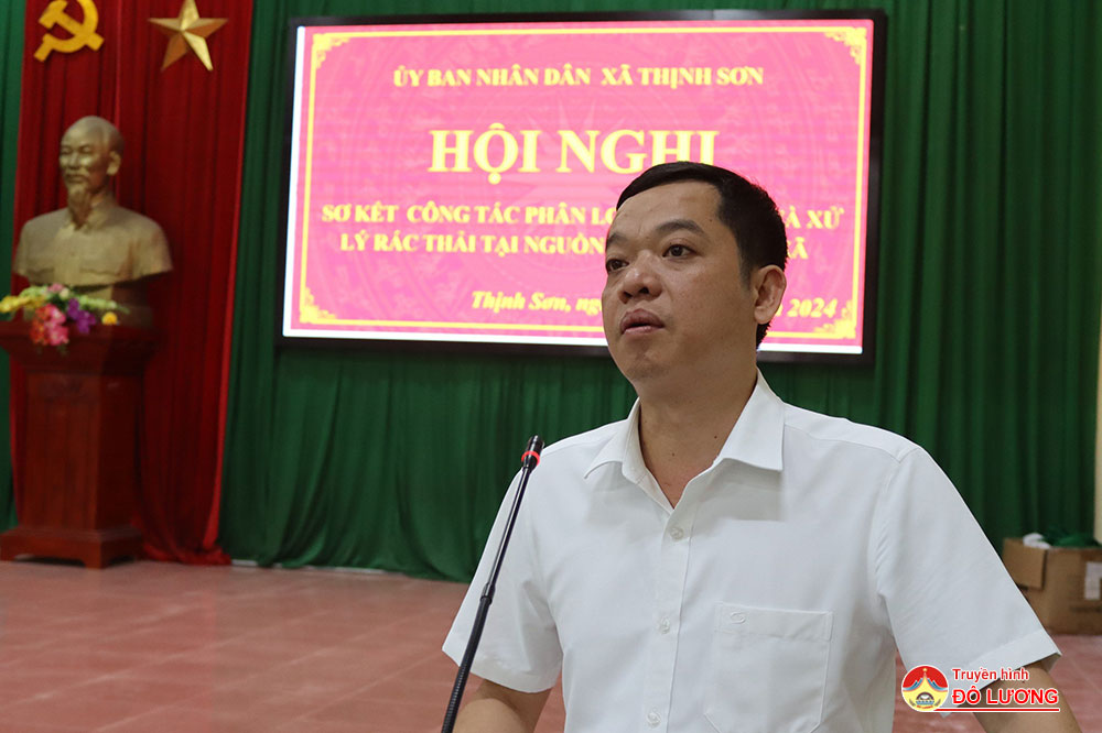 Việc thu gom phân loại rác thải tại nguồn, xử lý rác thải bằng men vi sinh đã được xã Thịnh Sơn tiến hành làm thí điểm tại xóm Đại Đồng, ngày 25/11/2023 UBND xã trích kinh phí để mua 350 thùng có nắp đậy phát cho các 350 hộ dân xóm Đại Đồng để các hộ dân thực hiện phân loại rác thải hữu cơ và bỏ vào thùng. Từ ngày 25/12/2023, UBND xã phối hợp với Hội phụ nữ xã tổ chức phát 896 thùng có nắp đậy cho các hộ dân của các xóm còn lại và tổ chức thu gom rác thải hữu cơ trên địa bàn toàn xã từ ngày 01 tháng 01 năm 2024.