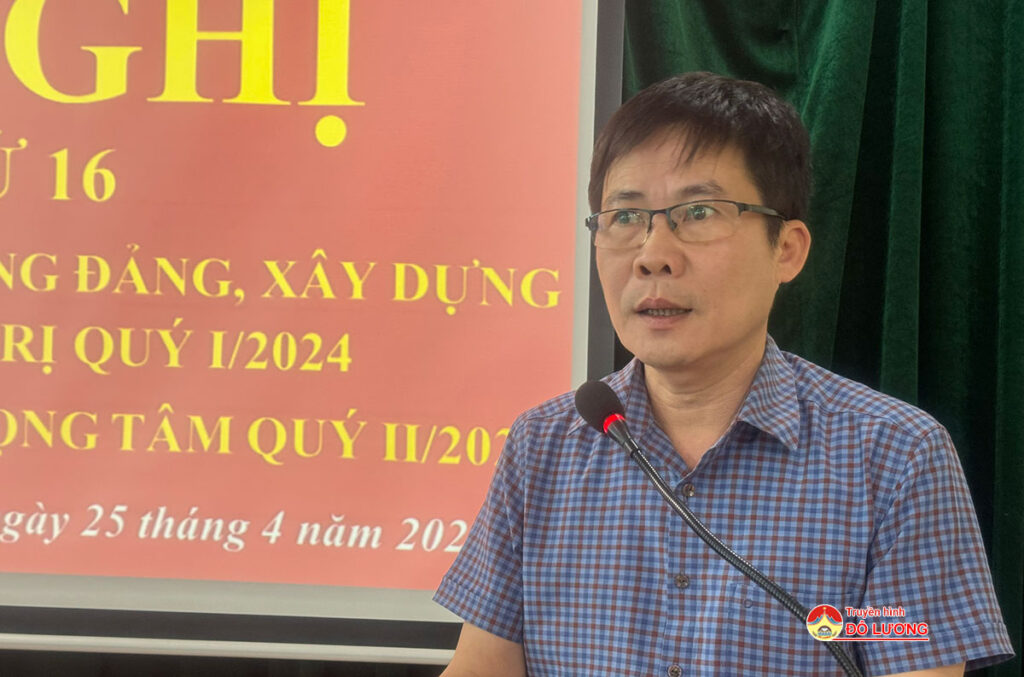 Phát biểu kết luận hội nghị, đồng chí Bí thư Huyện ủy nhấn mạnh: Trong quý 2 tiếp tục bám sát mục tiêu, chỉ tiêu, nhiệm vụ được giao tại Kết luận số 231-KL/HU, ngày 23/12/2023 của Ban chấp hành Đảng bộ huyện Đô Lương về tổng kết công tác xây dựng Đảng năm 2023, định hướng nhiệm vụ trọng tâm năm 2024; Chỉ đạo công tác chăm sóc và thu hoạch các loại cây trồng vụ Xuân; triển khai kế hoạch sản xuất vụ Hè thu – Mùa năm 2024. Đẩy mạnh công tác phòng trừ sâu bệnh ở cây trồng, đảm bảo năng suất và chất lượng cao; xây dựng phương án điều tiết nước, chống hạn phục vụ sản xuất..