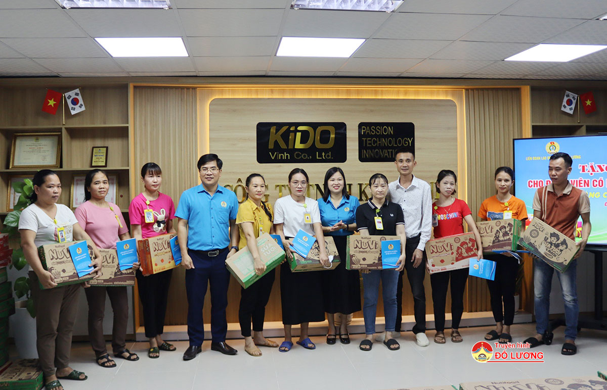 Tại Công ty KiDo đóng trên địa bàn xã Lạc Sơn, lãnh đạo LĐLĐ huyện cùng ông Nguyễn Đức Hùng- Giám đốc Công ty TNHH Hùng Minh đã trao 26 suất quà bao gồm 26 thùng sữa do Công ty TNHH Hùng Minh Phát tài trợ và 26 suất tiền mặt, mỗi suất 300.000 đồng do LĐLĐ huyện hỗ trợ.