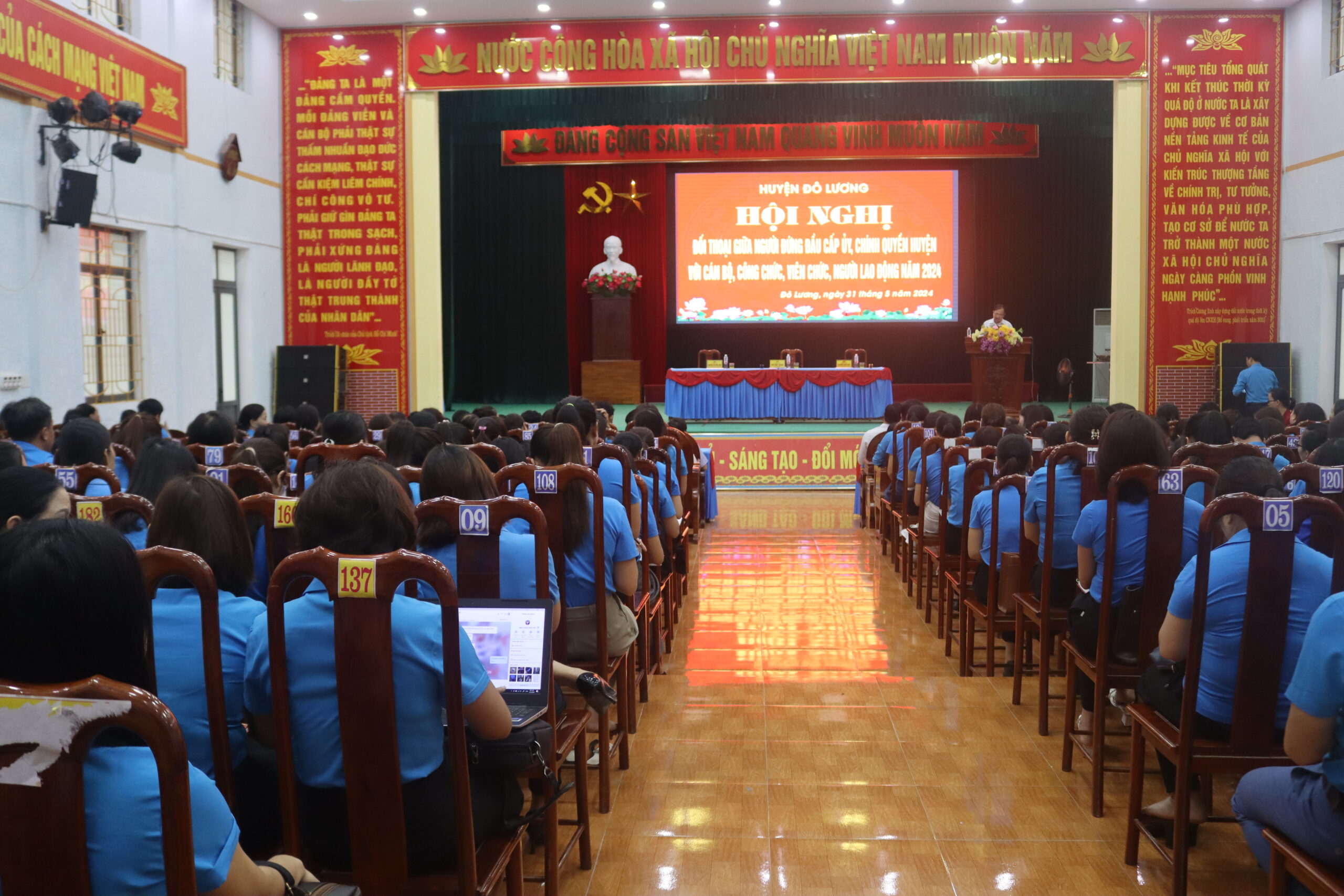 Sáng 31/5, dưới sự chủ trì của Thường trực Huyện ủy gồm các đồng chí: Bùi Duy Đông, Tỉnh ủy viên- Bí thư Huyện ủy; Nguyễn Tất Hoài Hiệp, Phó bí thư Thường trực Huyện ủy – Chủ tịch HĐND huyện; Hoàng Văn Hiệp, Phó bí thư Huyện ủy- Chủ tịch UBND huyện, Huyện Đô Lương đã tổ chức hội nghị đối thoại giữa người đứng đầu cấp ủy, chính quyền huyện với cán bộ, công chức, viên chức, người lao động năm 2024. Dự hội nghị có đồng chí: Nguyễn Thị Thu Nhi, Phó Chủ tịch Liên đoàn Lao động tỉnh Nghệ An; các đồng chí đại diện Thường trực HĐND huyện, các Phó chủ tịch UBND huyện; Ủy ban MTTQVN huyện; Đại diện lãnh đạo các cơ quan, ban, ngành thuộc UBND huyện. Chủ tịch Công đoàn các cơ sở trực thuộc Liên đoàn lao động huyện cùng cán bộ, công chức, viên chức và người lao động tham dự.