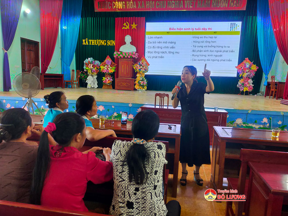 Sáng ngày 19/6/2024 tại xã Thượng Sơn, Tổ thực hiện Dự án AC Hội LHPN tỉnh Nghệ An phối hợp với Hội LHPN huyện Đô Lương tổ chức truyền thông “Giáo dục giới tính và chăm sóc sức khỏe sinh sản, sức khỏe tình dục an toàn cho trẻ vị thành niên. Hướng dẫn vệ sinh cá nhân cho trẻ vị thành niên ở tuổi dậy thì”.