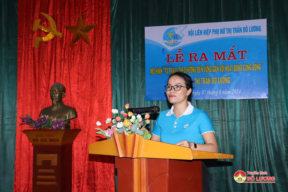 Phát biểu chỉ đạo tại buổi lễ, đồng chí Thái Thị Hiền – Chủ tịch Hội Liên hiệp Phụ nữ huyện mong muốn hoạt động của Tổ sẽ tạo sự chuyển biến mạnh mẽ về nhận thức của các thành viên và nhân dân trong triển khai, nâng cao chất lượng, hiệu quả vốn tín dụng chính sách xã hội, tăng tính ổn định và bền vững. Các thành viên trong tổ tích cực giúp đỡ nhau, từng bước có thói quen thực hành tiết kiệm để tăng nguồn vốn tự có và quen dần với sản xuất hàng hóa trong tín dụng và tài chính. Qua đó góp phần thực hiện tốt mục tiêu giảm nghèo, tạo việc làm, xây dựng đô thị văn minh, xây dựng khu dân cư kiểu mẫu, bảo đảm an sinh xã hội trên địa bàn.