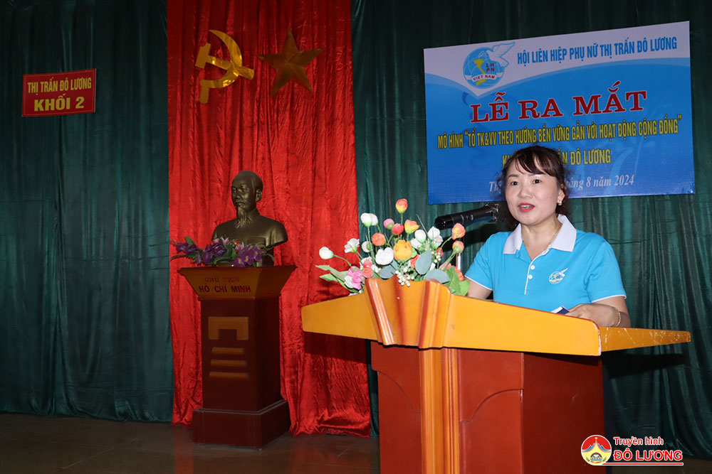 Chiều ngày 7/8, Hội Liên hiệp phụ nữ Thị Trấn phối hợp với Ngân hàng chính sách xã hội Đô Lương tổ chức lễ ra mắt mô hình “Tổ tiết kiệm và vay vốn theo hướng bền vững gắn với hoạt động cộng đồng” tại khối 2 Thị Trấn. Đây là một trong 3 mô hình điểm của Hội phụ nữ huyện được triển khai trên địa bàn Thị trấn Đô Lương.Tham dự có đồng chí Thái Thị Hiền- Chủ tịch Hội LHPN huyện Đô Lương; Ông Hồ Xuân Hải – Đại diện Ngân hàng chính sách huyện Đô Lương; Đại diện lãnh đạo Đảng, chính quyền Thị Trấn; Cán bộ các chi hội và hội viên phụ nữ khối 2 Thị trấn.