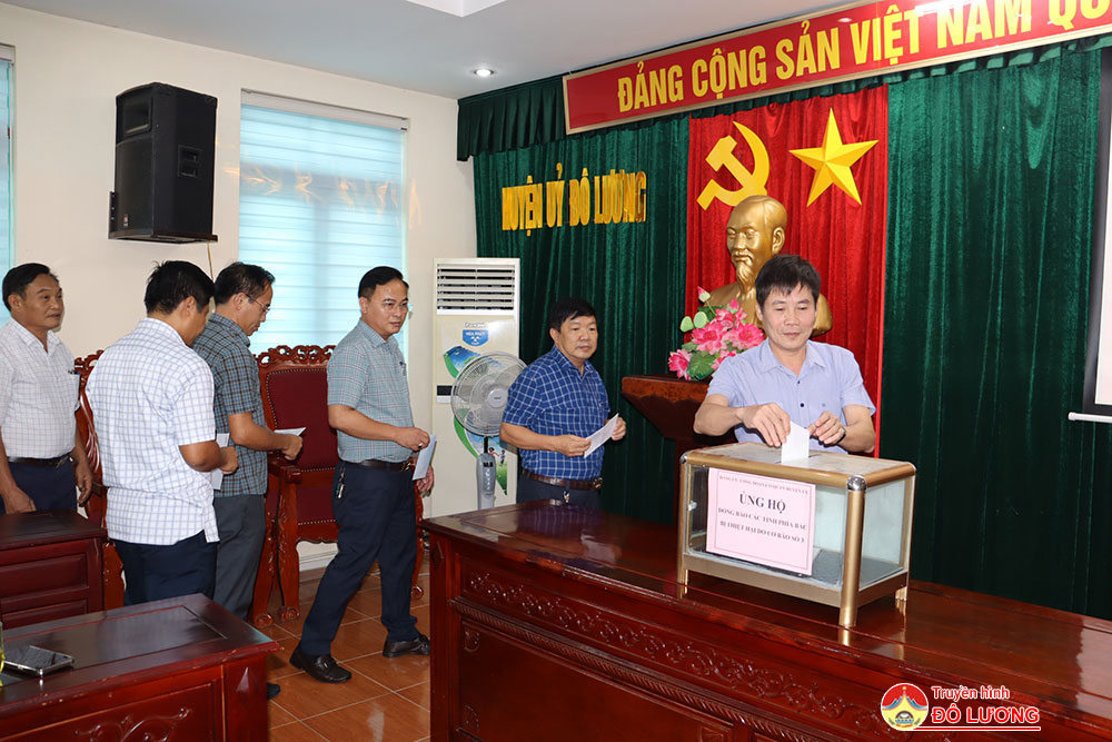 Trước những thiệt hại do cơn bão số 3 gây ra, Tổng Bí thư, Chủ tịch nước Tô Lâm đã kêu gọi tiếp tục phát huy mạnh mẽ “tình dân tộc, nghĩa đồng bào” hỗ trợ cao nhất, nhanh nhất, kịp thời nhất, đến tận tay các gia đình bị thiệt hại về người, tài sản do thiên tai gây ra. Hưởng ứng lời kêu gọi của đồng chí Tổng Bí thư, Chủ tịch nước và lời phát động ủng hộ đồng bào của Ủy ban Trung ương Mặt trận Tổ quốc Việt Nam, phát huy tinh thần “tương thân, tương ái”, “lá lành đùm lá rách”, các đồng chí Thường trực Huyện ủy, lãnh đạo, cán bộ, chuyên viên các ban ngành Huyện ủy Đô Lương đã ủng hộ đồng bào các tỉnh phía Bắc bị thiệt hại do bão và hoàn lưu bão số 3 gây ra với tổng số tiền trên 18 triệu đồng.