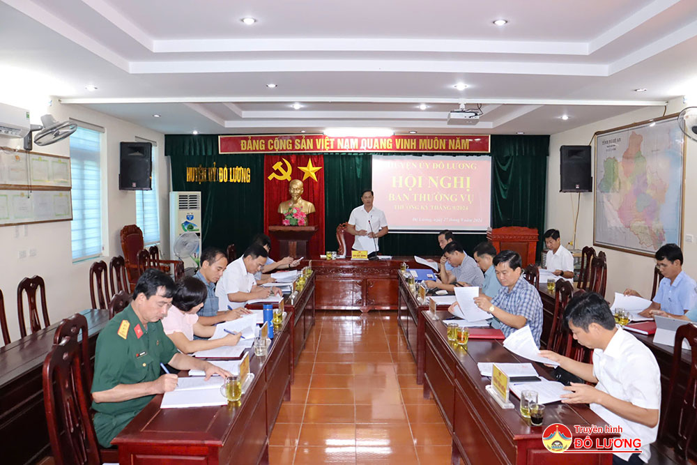 Sáng ngày 27/9, Ban Thường vụ Huyện ủy Đô Lương đã tổ chức hội nghị thường kỳ tháng 9/2024. Đồng chí Bùi Duy Đông- Tỉnh ủy viên- Bí thư Huyện ủy chủ trì hội nghị. Dự hội nghị có các đồng chí trong BTV Huyện ủy; Đồng chí Trần Văn Hiến – HUV, Phó Chủ tịch UBND huyện; Trưởng các phòng: Tài nguyên – Môi trường, Tài chính – Kế hoạch, Kinh tế – Hạ tầng, Giám đốc Ban quản lý đầu tư xây dựng huyện.