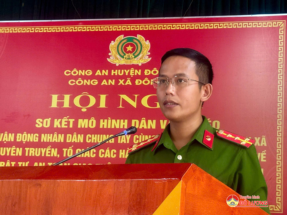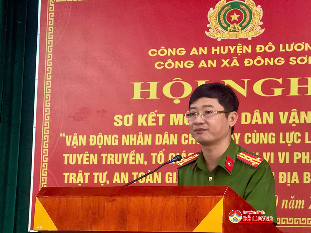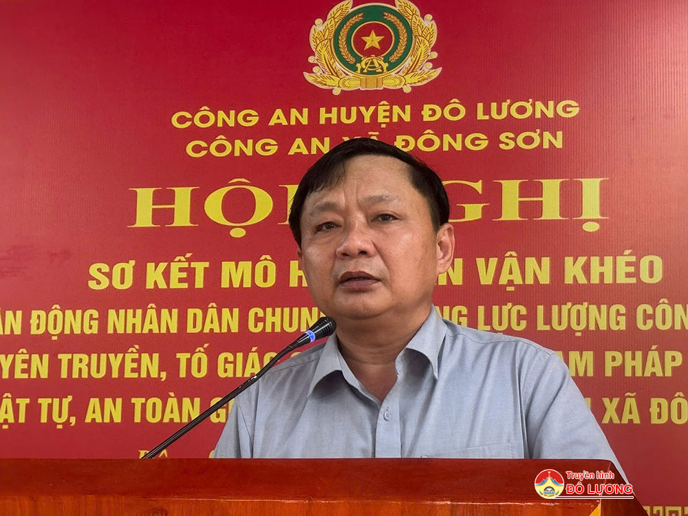 Phát biểu tại hội nghị, Đại Tá Trần Ngọc Tuấn- Phó giám đốc Công an Tỉnh và đồng chí Nguyễn Trung Thành- Ủy viên BTV- Phó chủ tịch UBND huyện đã đánh giá tốt hiệu quả mô hình. Đồng thời yêu cầu, thời gian tới, để tiếp tục phát huy hơn nữa hiệu quả mà mô hình mang lại, đề nghị Công an huyện Đô Lương, Công an xã Đông Sơn tập trung thực hiện tốt một số nội dung đó là: đối với Công an huyện Đô Lương, tiếp tục phát huy vai trò chủ công, nòng cốt trong tham mưu, giúp lãnh đạo Huyện ủy, UBND huyện tăng cường chỉ đạo công tác đảm bảo ANTT. Chỉ đạo Công an các xã, thị trấn tích cực tham mưu Đảng ủy, UBND các xã, thị trấn trong triển khai đồng bộ, hiệu quả các giải pháp đảm bảo ANTT, ATGT trên địa bàn. Đối với Cấp ủy, chính quyền xã Đông Sơn phải thực sự ủng hộ, tạo mọi điều kiện thuận lợi, quan tâm, chỉ đạo huy động sức mạnh của cả hệ thống chính trị để hỗ trợ, giúp đỡ Công an xã Đông Sơn thực hiện thành công mô hình, sớm nhân rộng ra địa bàn toàn huyện. Công an xã Đông Sơn tiếp tục nghiên cứu những cách làm hay, sáng tạo để thực hiện có hiệu quả các nội dung, phần việc của mô hình. Chi huy, CBCS Công an xã phải thực sự trách nhiệm, tận tụy, tâm huyết, quyết tâm thực hiện thành công mô hình; tập trung làm tốt công tác Dân vận.