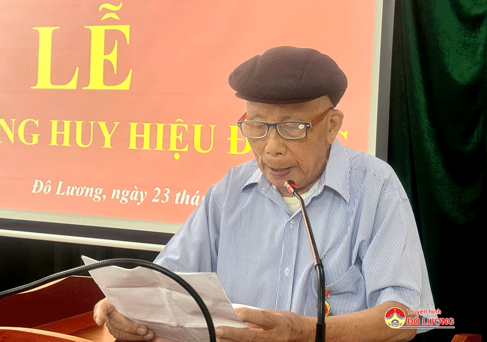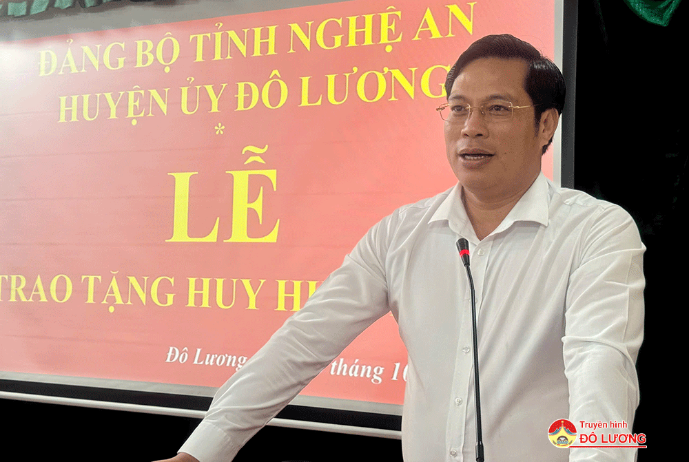 Phát biểu tại lễ trao huy hiệu Đảng, thay mặt Đảng bộ huyện Đô Lương, đồng chí Bùi Duy Đông- Tỉnh ủy viên- Bí thư Huyện ủy đã gửi lời chúc mừng đến các đồng chí đảng viên và gia đình các đảng viên được nhận huy hiệu Đảng. Đồng thời, đồng chí Bí thư Huyện ủy bày tỏ lòng biết ơn sâu sắc đến các đảng viên. Nhận huy hiệu 65, 70 năm tuổi Đảng không chỉ là thời gian cống hiến, đi theo Đảng trọn đời, mà các đồng chí còn thể hiện tinh thần trung kiên, sắc son với Đảng. Đồng chí Bí thư Huyện ủy chúc các đồng chí giữ gìn sức khỏe, sống vui cùng con cháu, đồng thời luôn là tấm gương sáng cho các đảng viên, quần chúng noi theo. Đối với cấp ủy Đảng, chính quyền địa phương phải luôn quan tâm đến đời sống của các đảng viên được nhận huy hiệu Đảng.