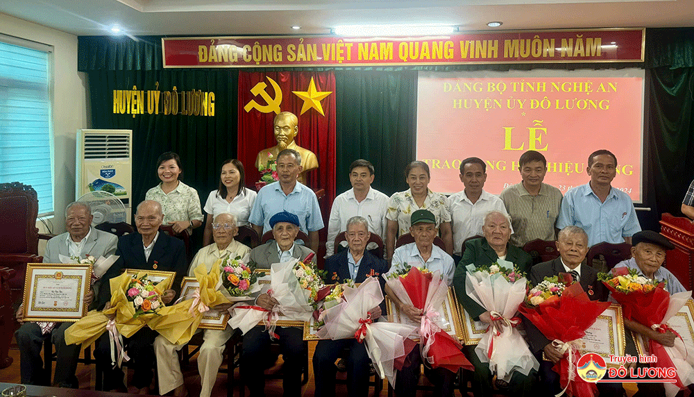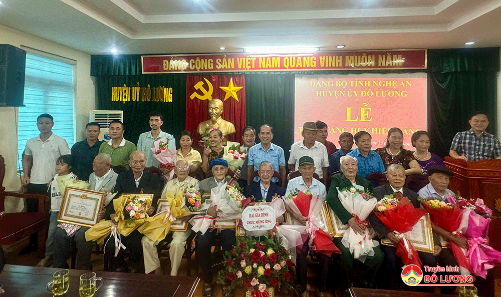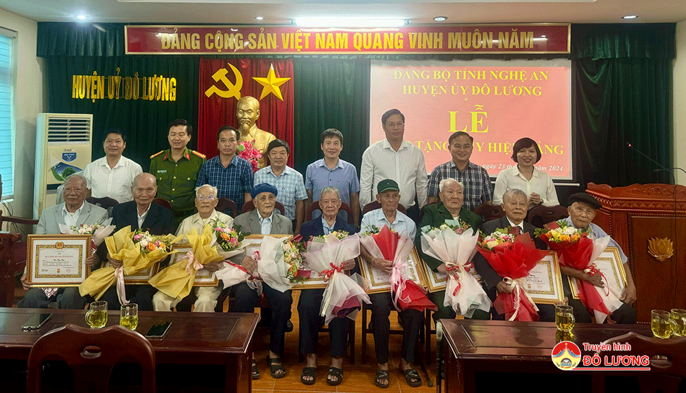 Chiều ngày 23/10, Huyện ủy Đô Lương đã tổ chức lễ trao huy hiệu 65, 70 năm tuổi Đảng cho 9 đảng viên. Dự lễ trao huy hiệu Đảng có đồng chí Bùi Duy Đông- Tỉnh ủy viên- Bí thư Huyện ủy, đồng chí Nguyễn Tất Hoài Hiệp- Phó bí thư Thường trực Huyện ủy- Chủ tịch HĐND huyện; các đồng chí trong BTV Huyện ủy; lãnh đạo địa phương các đảng viên nhận huy hiệu Đảng và người thân các đảng viên được nhận huy hiệu Đảng.