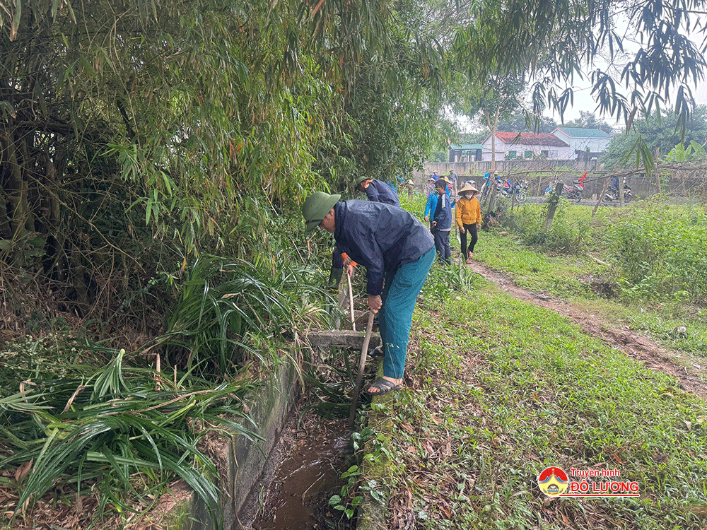Ngay trong buổi sáng, toàn bộ lực lượng lao động đã tham gia tích cực, không quản ngại hệ thống mương sâu, bùn đất nhiều, cỏ dại, bụi gai nhiều chỗ mọc um tùm trên bờ mương, thậm chí che kín cả mặt mương. CBCNVC Xí nghiệp Thủy lợi Đô Lương và nhân dân đã nạo vét bùn đất, phát quang, khơi thông toàn bộ hệ thống lòng kênh.