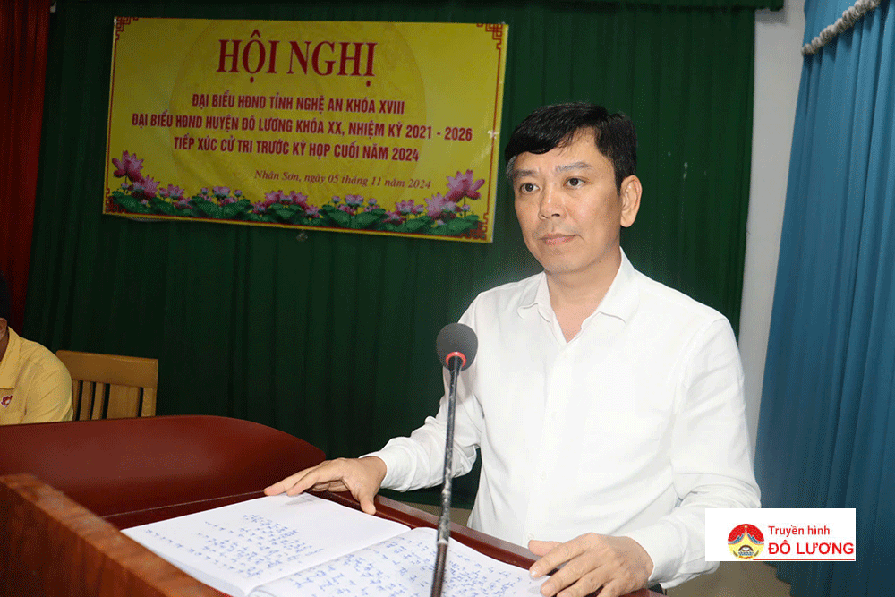Chiều ngày 5/11, đại biểu HĐND tỉnh Nghệ An và HĐND huyện Đô Lương gồm các vị: Ngọc Kim Nam – Ủy viên Ban Thường vụ, Trưởng Ban Dân Vận Tỉnh ủy, Hoàng Thị Hồng Hạnh – Bí thư Đảng ủy xã Trung Sơn, Nguyễn Công An – Chủ tịch Hội Nông dân huyện, Trần Thị Huyền Mơ – Bí thư Huyện đoàn huyện Đô Lương đã về tiếp xúc cử tri xã Nhân Sơn trước kỳ họp cuối năm 2024.