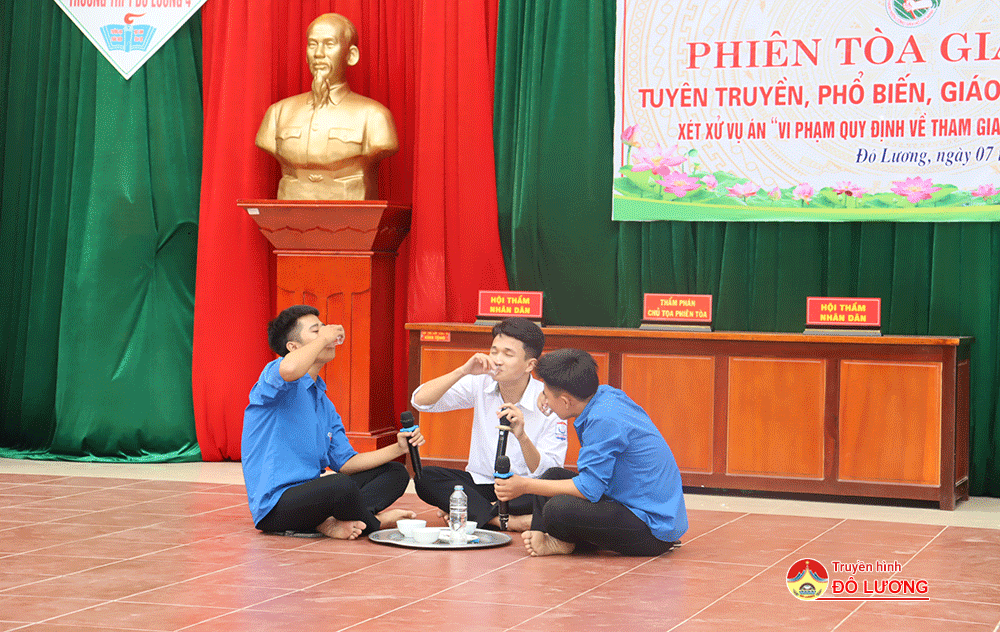 Tình huống giả định đặt ra: Tòa án nhân huyện mở phiên tòa sơ thẩm xét xử công khai vụ án Lê Văn L – Sinh năm 2006, là học sinh lớp 12A3 Trường THPT Đô Lương 4. Khoảng 06h30’ ngày 05/7/2023, L mượn xe mô tô của gia đình để đi học. Đến 10 giờ 20 cùng ngày thì học xong. Do buổi chiều được nghỉ nên L đã đến nhà bạn học ở xã Hiến Sơn để ăn cơm trưa và uống rượu.