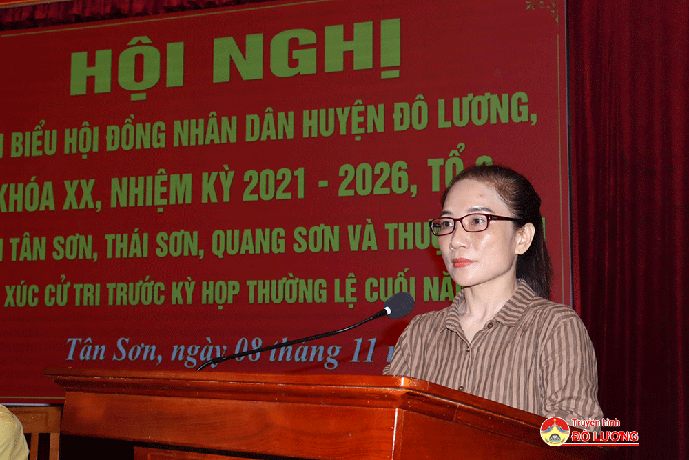 Đại diện đoàn đại biểu HĐND huyện, đồng chí Nguyễn Thị Anh Quang – Phó chủ tịch UBND huyện đã tiếp thu ý kiến của cử tri, đồng thời trả lời các vấn đề cử tri xã Tân Sơn quan tâm về lĩnh vực UBND huyện quản lý. Những ý kiến thuộc cấp xã giao cho cấp xã giải quyết. Những ý kiến ngoài thẩm quyền, các đại biểu HĐND huyện tiếp thu, tổng hợp để chuyển đến cơ quan chức năng liên quan trả lời, giải quyết trong kỳ họp sắp tới.