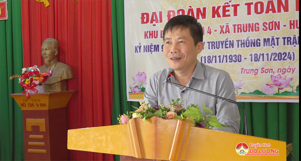 Phát biểu tại buổi lễ, đồng chí Nguyễn Tất Hoài Hiệp – Phó Bí thư Thường trực Huyện uỷ, Chủ tịch HĐND huyện đã vui mừng thông báo về những thành tựu phát triển trên mọi mặt của cả nước, của tỉnh Nghệ An và huyện Đô Lương, đồng chí khẳng định những kết quả đó có một phần đóng góp không nhỏ của cán bộ và nhân dân khu dân cư xóm 4, xã Trung Sơn. Qua đây, đồng chí mong muốn xóm tiếp tục phát huy tinh thần đoàn kết, nỗ lực phấn đấu để đạt được nhiều thành tích hơn nữa trong thời gian tới.
