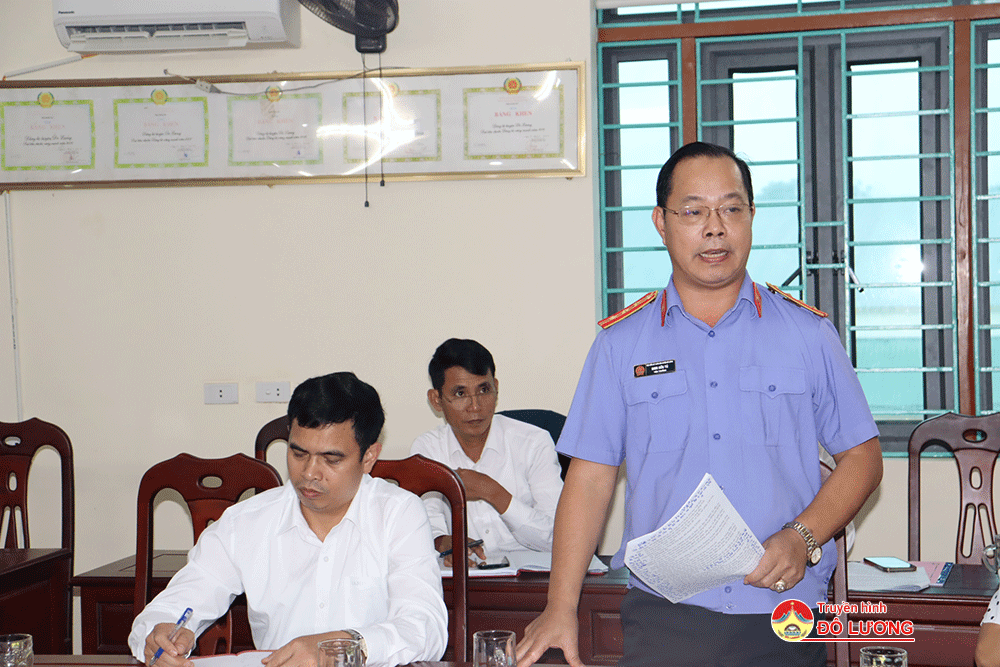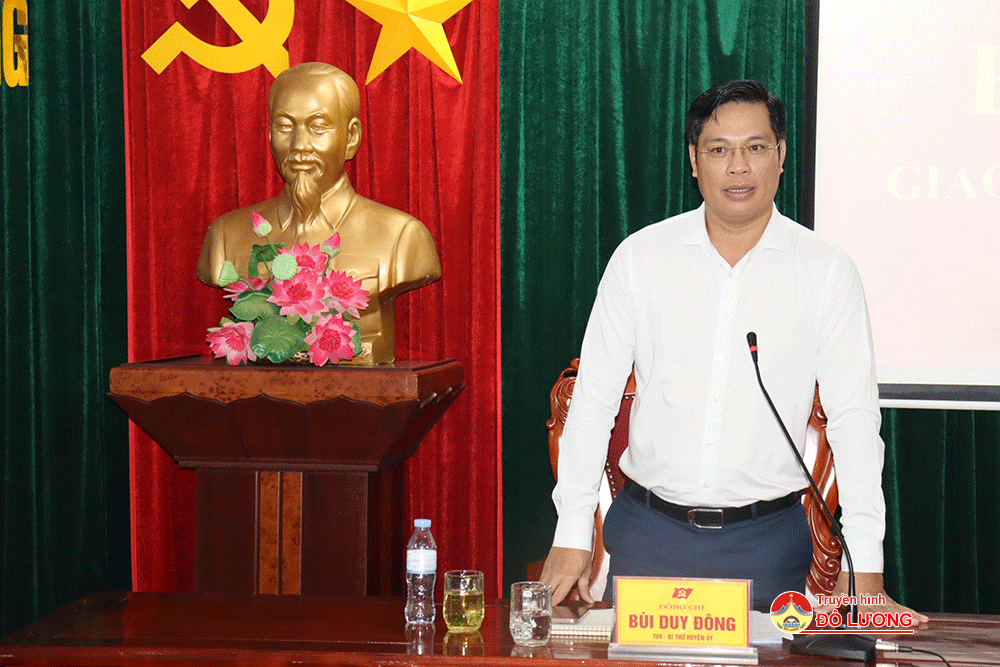 Phát biểu chỉ đạo tại hội nghị, đồng chí Bùi Duy Đông – Tỉnh ủy viên, Bí thư Huyện ủy nêu rõ: Hiện đã vào tháng gần cuối năm, công tác nội chính cần hết sức quan tâm, nhất là giải quyết dứt điểm khiếu nại, tố cáo theo đúng trình tự, không để phát sinh vụ việc mới. Các ngành tiếp tục tham mưu cho cấp ủy, chính quyền lãnh đạo, chỉ đạo bảo đảm an ninh quốc gia, trật tự an toàn xã hội. Tổ chức các hoạt động chào mừng 80 năm ngày thành lập Quân đội nhân dân Việt Nam, 35 năm ngày Quốc phòng toàn dân và các ngày lễ trọng đại trong tháng. Tập trung cao công tác tuyển chọn gọi công dân nhập ngũ, làm nghĩa vụ Công an nhân dân, hoàn thành chỉ tiêu giao. Chủ động nắm bắt tình hình, dự báo sớm, chính xác các tình huống phức tạp. Tăng cường công tác kiểm tra, xử lý vi phạm trật tự an toàn giao thông, tội phạm ma túy, giải tỏa hành lang an toàn giao thông, nhất là tội phạm trộm cắp thường lợi dụng hoạt động cuối năm. Tăng cường quản lý đất đai, tài nguyên khoáng sản. Tiếp tục tăng cường quản lý, kiểm tra, kiểm soát thị trường, phòng chống buôn lậu, gian lận thương mại, hàng hóa, hàng kém chất lượng, vi phạm an toàn thực phẩm, chú trọng vệ sinh an toàn thực phẩm trong các trường học. Tập trung giải quyết các đơn thư khiếu nại, tố cáo, phản ánh, kiến nghị của công dân. Tăng cường kỷ cương, kỷ luật hành chính trong việc thực thi công vụ. Giữ vững ổn định về an ninh trật tự, thúc đẩy phát triển kinh tế chính trị trên địa bàn huyện.