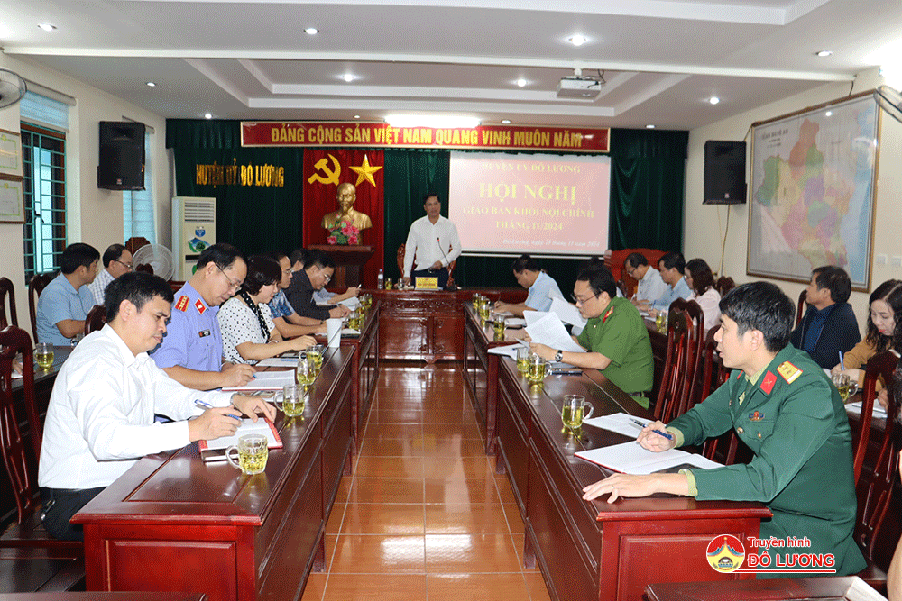 Chiều ngày 25/11/2024, dưới sự chủ trì của đồng chí Bùi Duy Đông, Tỉnh ủy viên- Bí thư Huyện ủy Đô Lương, Huyện ủy Đô Lương đã tổ chức hội nghị giao ban khối Nội chính tháng 11 năm 2024 và triển khai nhiệm vụ trọng tâm tháng 12 năm 2024. Tham dự hội nghị có đồng chí Nguyễn Tất Hoài Hiệp – Phó Bí thư Thường trực Huyện ủy, Chủ tịch HĐND huyện, lãnh đạo các Ban, phòng, ngành liên quan.