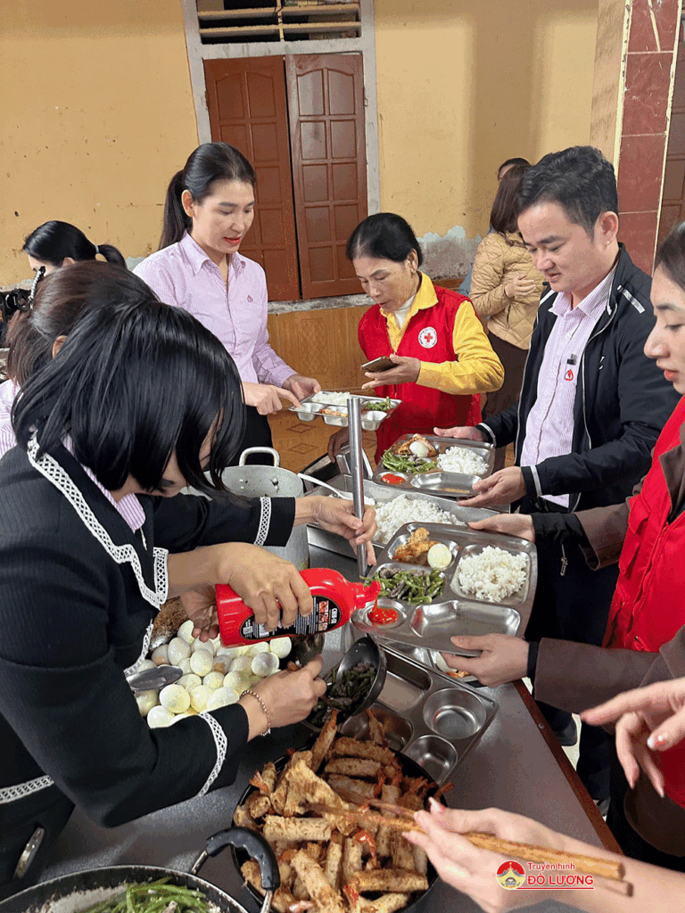 Trưa ngày 27/11, Công đoàn Phòng giao dịch Ngân hàng chính sách xã hội huyện Đô Lương trao bữa cơm tình thương tại Trung tâm Công tác xã hội huyện Tỉnh Nghệ An, nơi đang nuôi dưỡng các em nhỏ có hoàn cảnh bất hạnh.