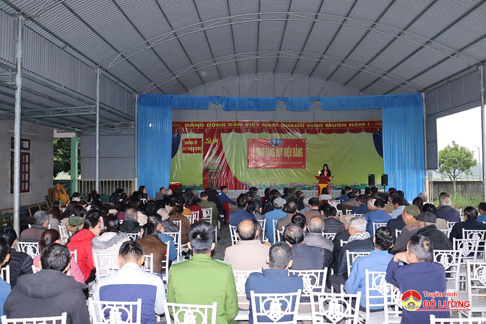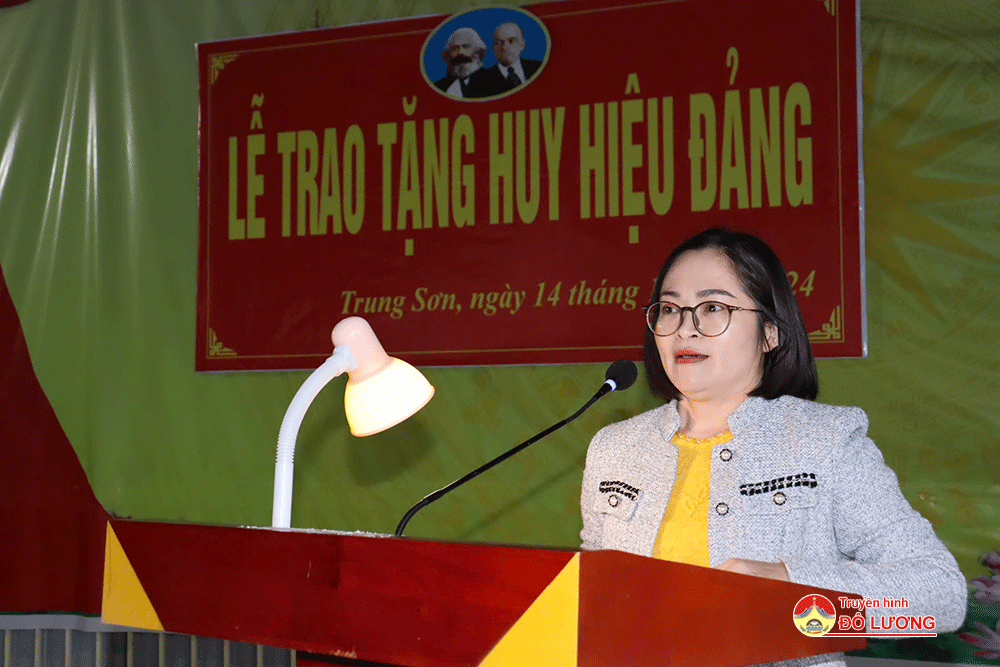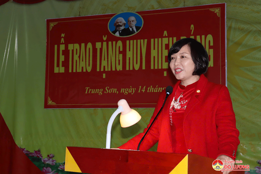 Được ủy quyền cấp trên, đồng chí Vương Thị Quý – Ủy viên Ban Thường vụ Huyện ủy, Chủ tịch UBMTTQ huyện đã trao Huy hiệu Đảng cho các đảng viên, đồng thời phát biểu chúc mừng các đảng viên, đồng chí nhấn mạnh đây là điều ghi nhận của Đảng về những công lao đóng góp của các đồng chí đối với sự nghiệp xây dựng và phát triển Đảng, mong muốn các đồng chí tiếp tục phấn đấu, rèn luyện và cống hiến trí tuệ, sức mình cho sự nghiệp đổi mới của Đảng, chung tay xây dựng quê hương, đất nước.