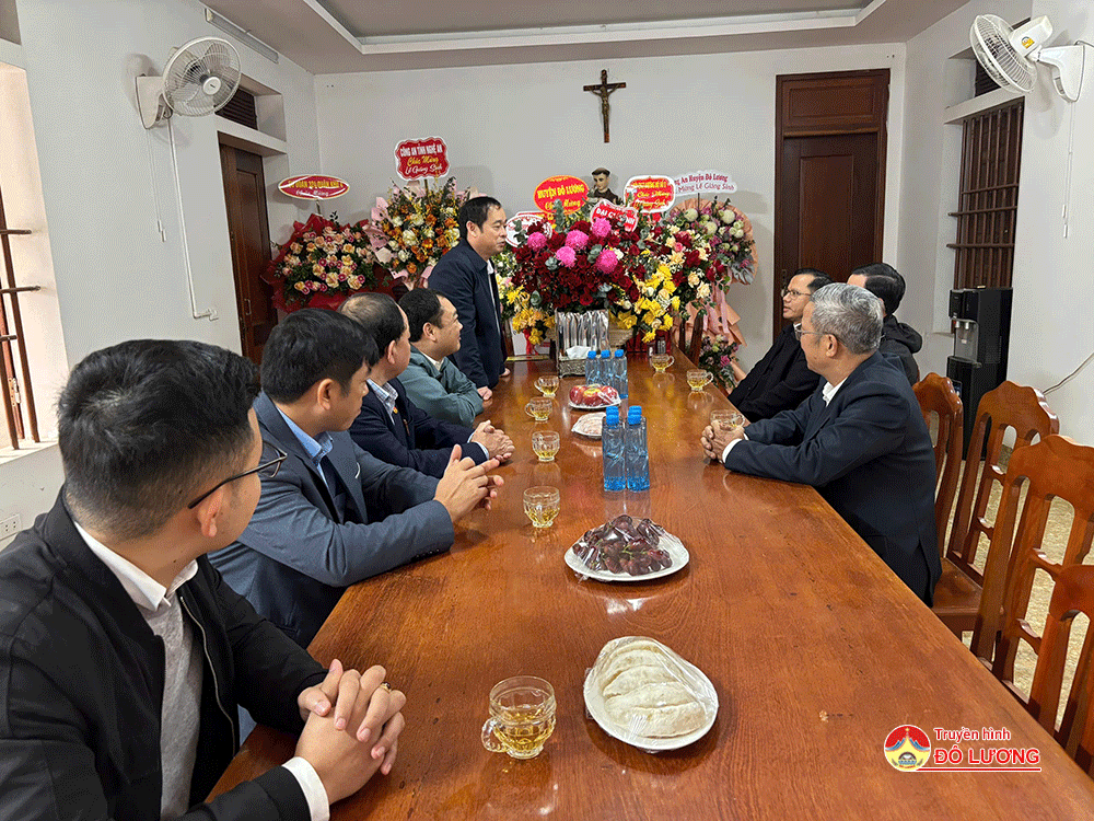 Tại buổi gặp mặt, thay mặt Huyện ủy, HĐND, UBND, UBMTTQ huyện, đồng chí Hoàng Văn Hiệp – Phó bí thư Huyện ủy- Chủ tịch UBND huyện và các đồng chí trong đoàn gửi lời chúc tốt đẹp nhất tới các linh mục, các chức sắc cùng bà con giáo dân toàn giáo xứ đón một mùa giáng sinh đầm ấm, an lành, hạnh phúc; đồng thời bày tỏ trước những đóng góp của các linh mục, bà con giáo dân vào sự phát triển kinh tế – xã hội của địa phương. Đồng chí Phó bí thư huyện ủy- Chủ tịch UBND huyện bày tỏ mong muốn thời gian tới, các linh mục, chức sắc tiếp tục tuyên truyền, vận động bà con giáo dân phát huy tinh thần đoàn kết, kính Chúa yêu nước, sống tốt đời đẹp đạo, đồng hành cùng cấp ủy, chính quyền địa phương chung sức xây dựng quê hương ngày càng văn minh, giàu đẹp.