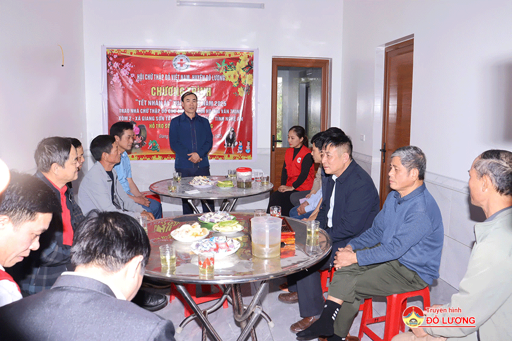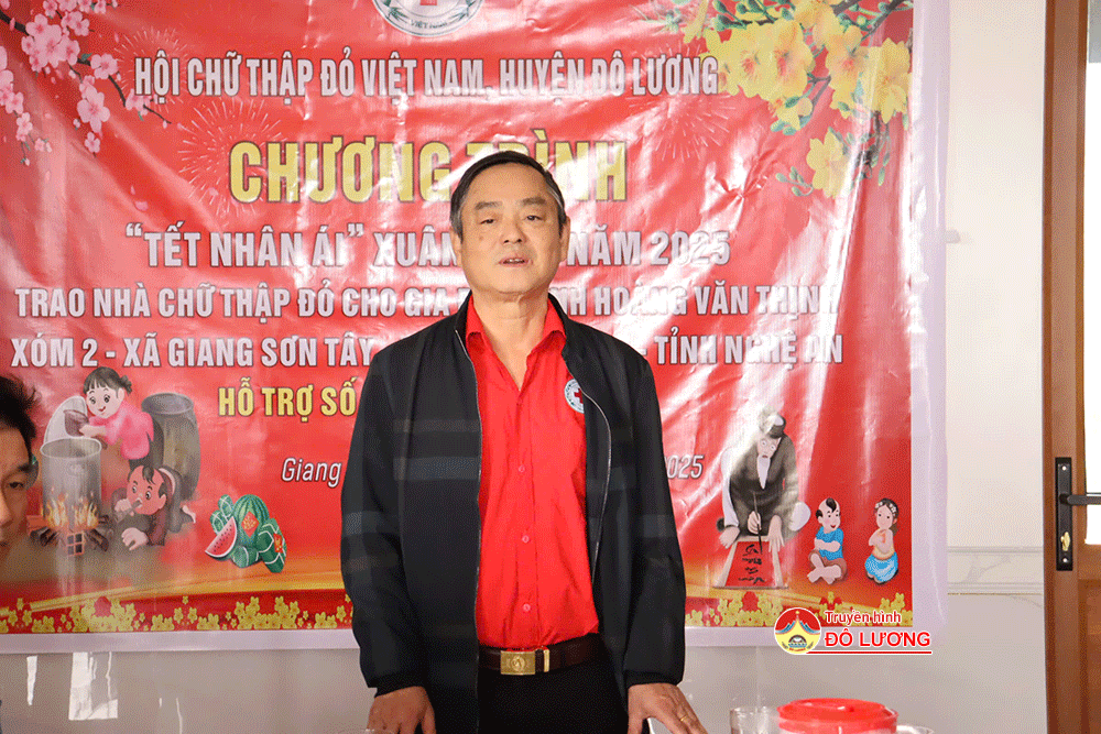 Tại buổi lễ, thay mặt hội Chữ thập đỏ huyện Đô Lương, ông Nguyễn Tất Hồng- Phó chủ hội Chữ thập đỏ huyện Đô Lương đã phát biểu chúc mừng và đồng thời trao số tiền hỗ trợ 50 triệu đồng cho gia đình Anh Hoàng Văn Thịnh ở xóm 2 xã Giang Sơn Tây. Căn nhà mới khang trang không chỉ thể hiện trách nhiệm của các cấp ủy Đảng, các tổ chức chính trị xã hội mà còn thể hiện tấm lòng tương thân tương ái, lá lành đùm lá rách đối với những hoàn cảnh thiếu may mắn trong cuộc sống.