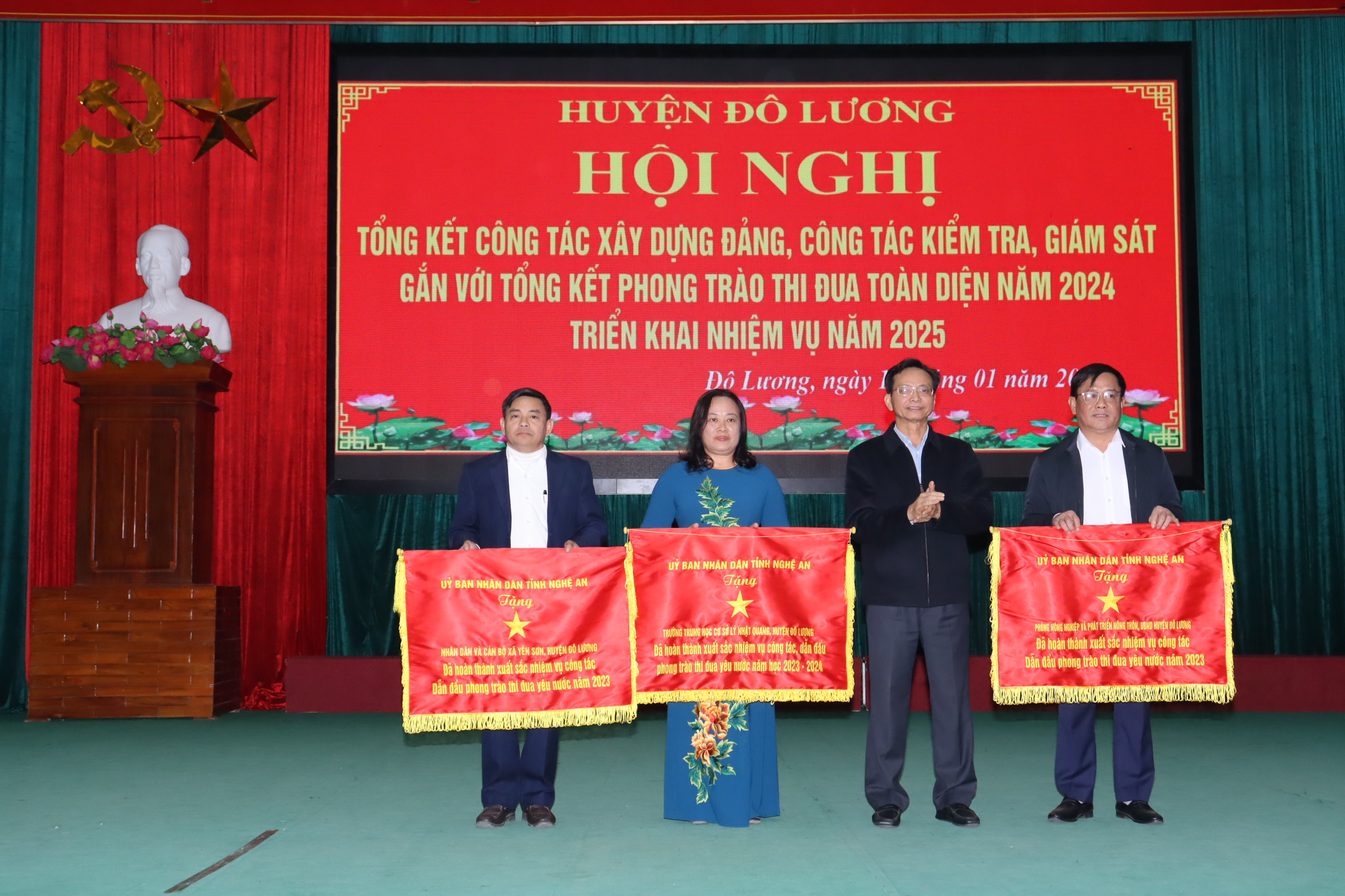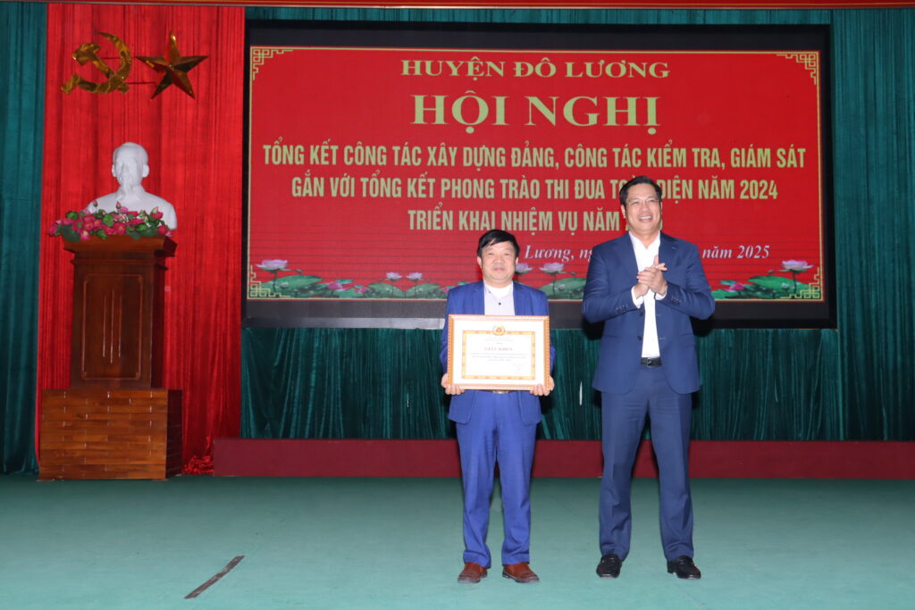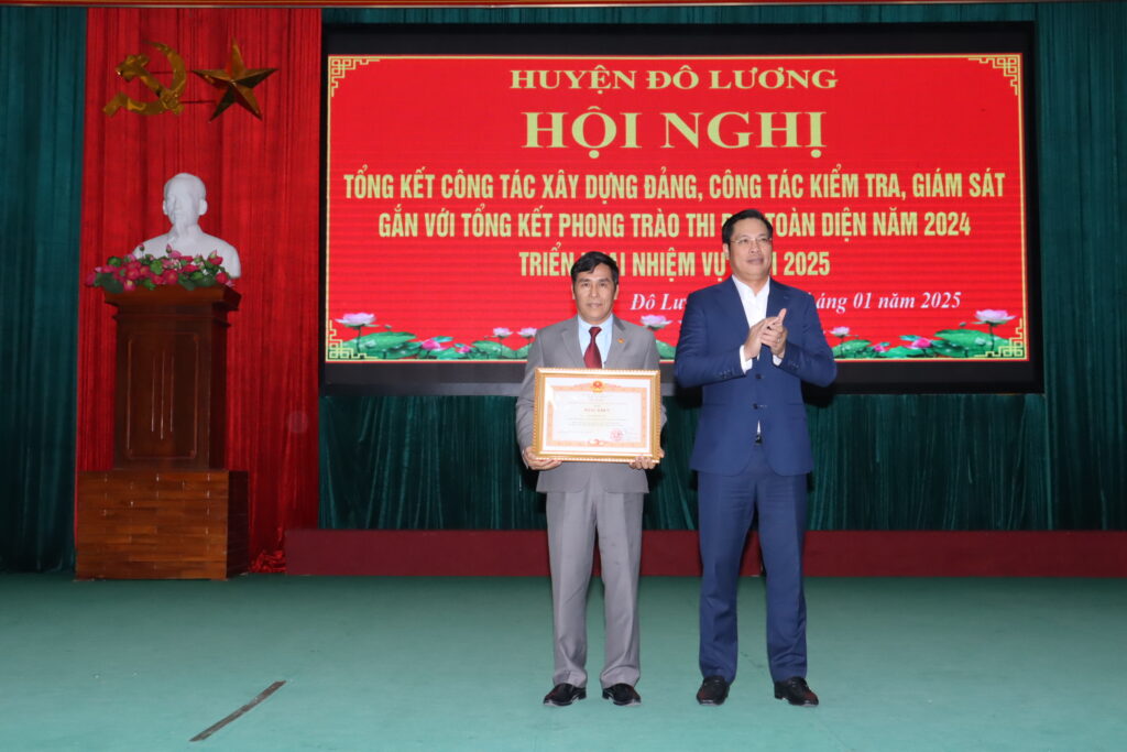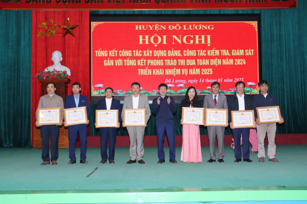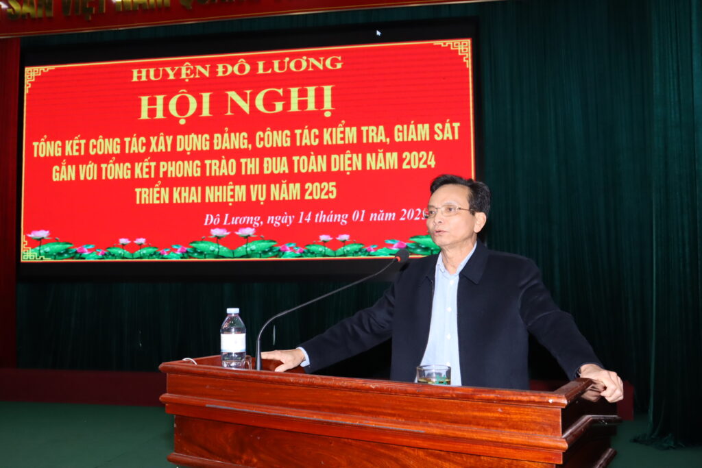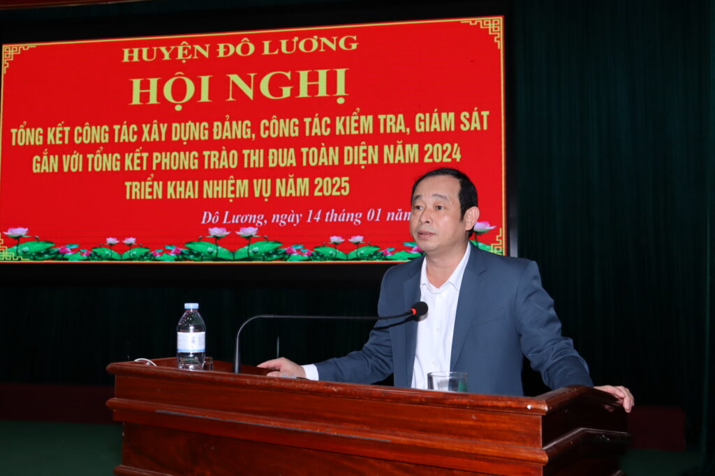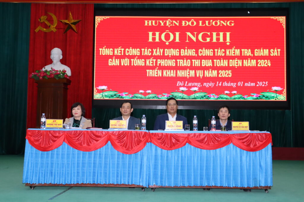 Chiều ngày 14/1, huyện Đô Lương đã tổ chức hội nghị tổng kết công tác xây dựng Đảng, công tác kiểm tra, giám sát gắn với phong trào thi đua toàn diện năm 2024 và triển khai nhiệm vụ 2025. Tham dự có đồng chí Hoàng Danh Lai – Phó Trưởng Ban tổ chức Tỉnh ủy, đồng chí Phan Thị Hải Anh – Phó Phòng nghiệp vụ thi đua khen thưởng tỉnh. Chủ trì hội nghị có các đồng chí: Bùi Duy Đông – Tỉnh ủy viên, Bí thư Huyện ủy; Nguyễn Tất Hoài Hiệp – Phó Bí thư Thường trực Huyện ủy, Chủ tịch HĐND huyện; Hoàng Văn Hiệp – Phó Bí thư Huyện ủy, Chủ tịch UBND huyện; đồng chí Vương Thị Quý – Ủy viên BTV Huyện ủy, Chủ tịch UBMTTQ huyện; các đồng chí trong BTV Huyện ủy, Ủy viên BCH Đảng bộ huyện, lãnh đạo các cơ quan, ban, ngành và các đơn vị xã, thị trấn.