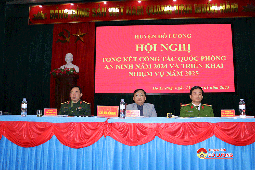 Chiều ngày 13/1/2025, huyện Đô Lương đã tổ chức hội nghị tổng kết công tác Quốc phòng – An ninh năm 2024 và triển khai nhiệm vụ năm 2025. Tham dự hội nghị có đồng chí Bùi Duy Đông- Tỉnh ủy viên, Bí thư Huyện ủy; đồng chí Nguyễn Tất Hoài Hiệp – Phó Bí thư thường trực Huyện ủy, Chủ tịch HĐND huyện; các đồng chí trong BTV Huyện ủy; lãnh đạo các cơ quan, đơn vị đóng quân trên địa bàn; lãnh đạo các cơ quan, ban, ngành cấp huyện và 32 xã, thị trấn. Chủ trì hội nghị có các đồng chí: Nguyễn Trung Thành – Phó Chủ tịch UBND huyện; Thượng tá Chu Quang Thành, Trưởng công an huyện; Thượng tá Thái Khắc Phú – Chỉ huy trưởng Ban chỉ huy Quân sự huyện.