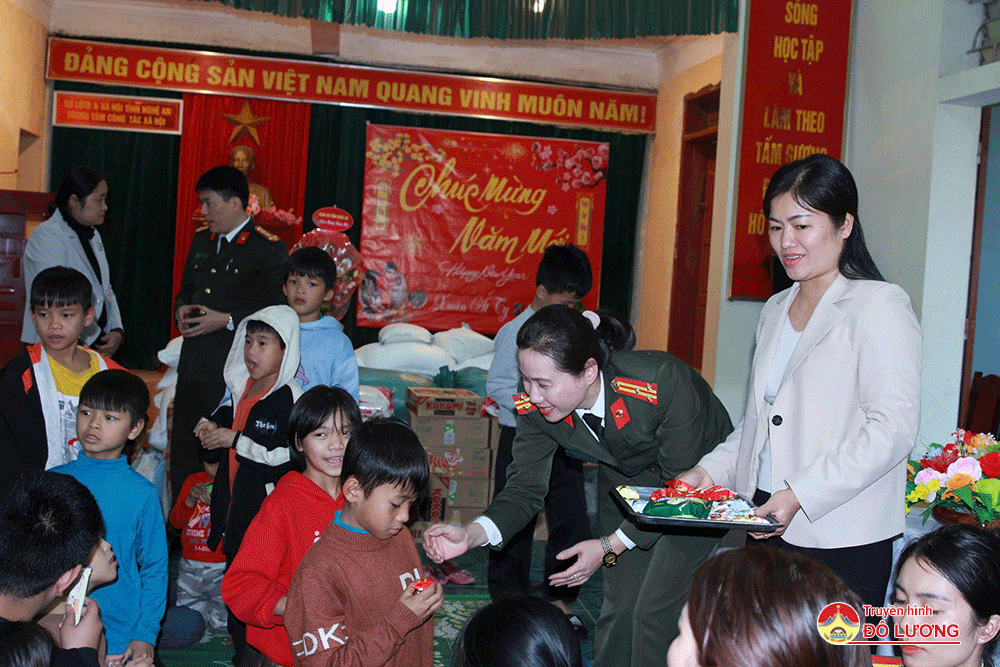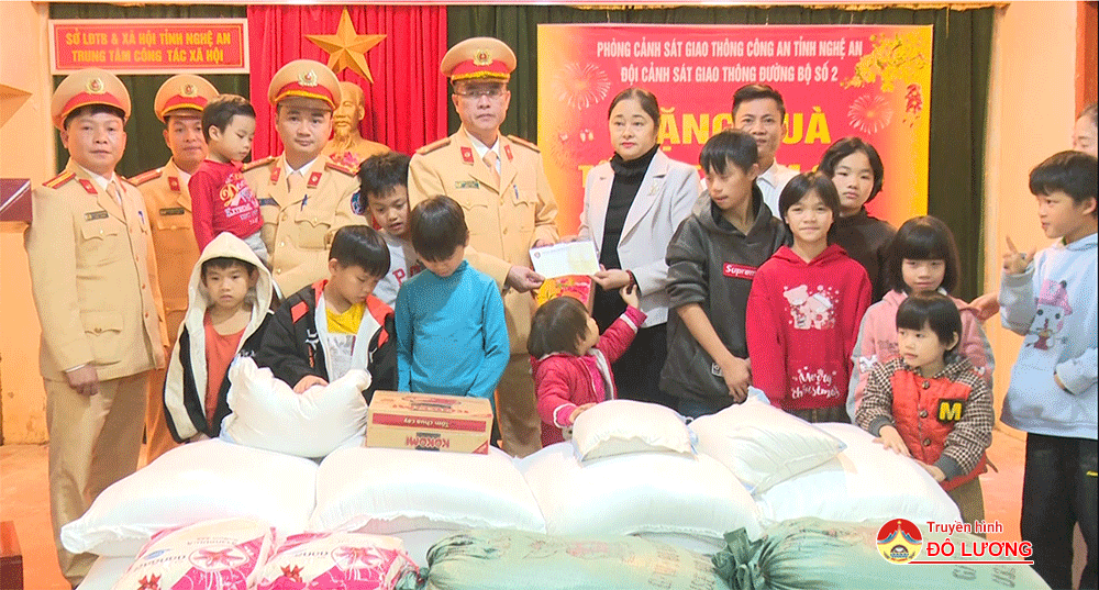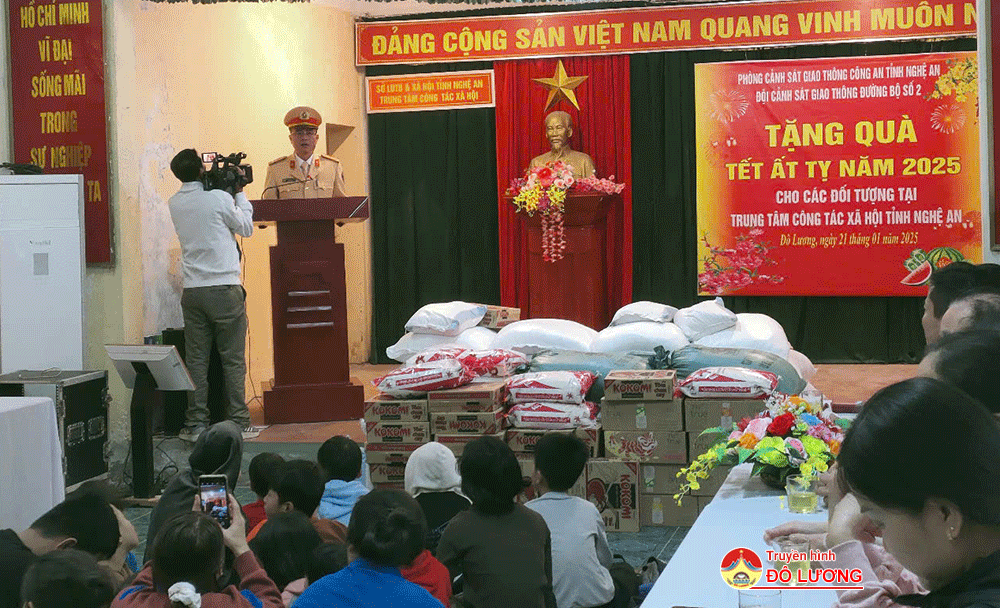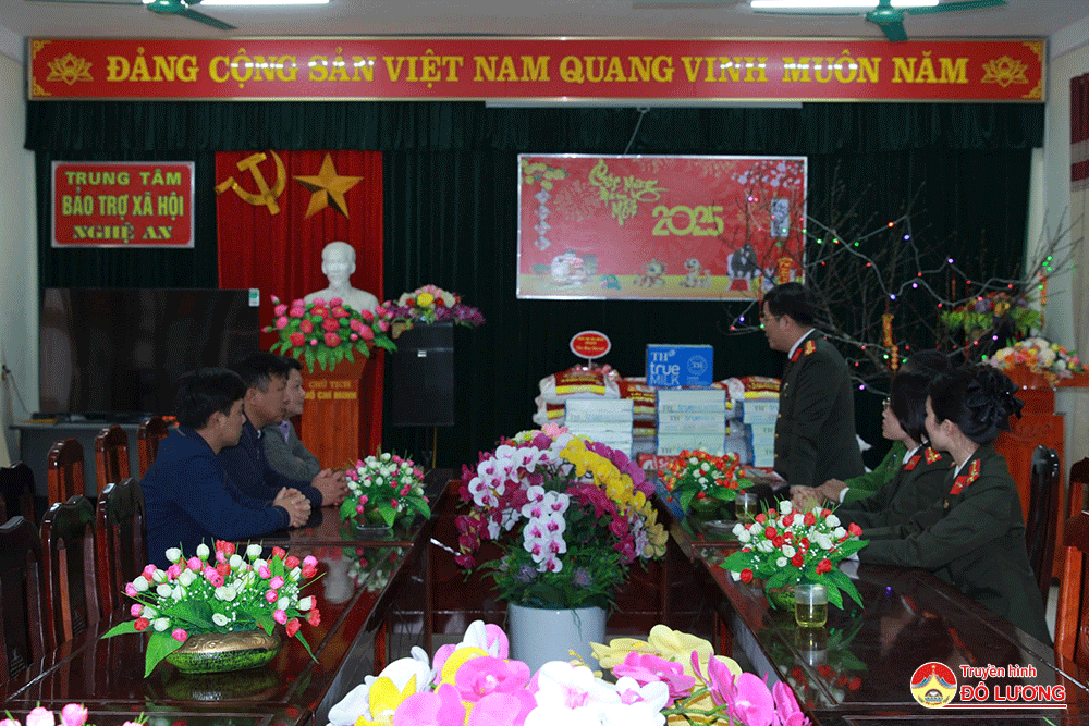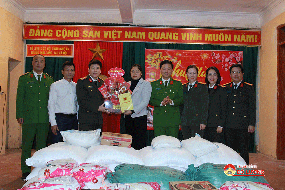 Tại đây, đồng chí Trung tá Nguyễn Anh Tuấn – Đội trưởng Đội cảnh sát giao thông đường bộ số 2, cùng các cán bộ, chiến sỹ trong Đội đã thăm hỏi, chúc Tết và trao tặng quà gồm lương thực, nhu yếu phẩm trị giá 10 triệu đồng cho Trung tâm công tác xã hội tỉnh Nghệ An.